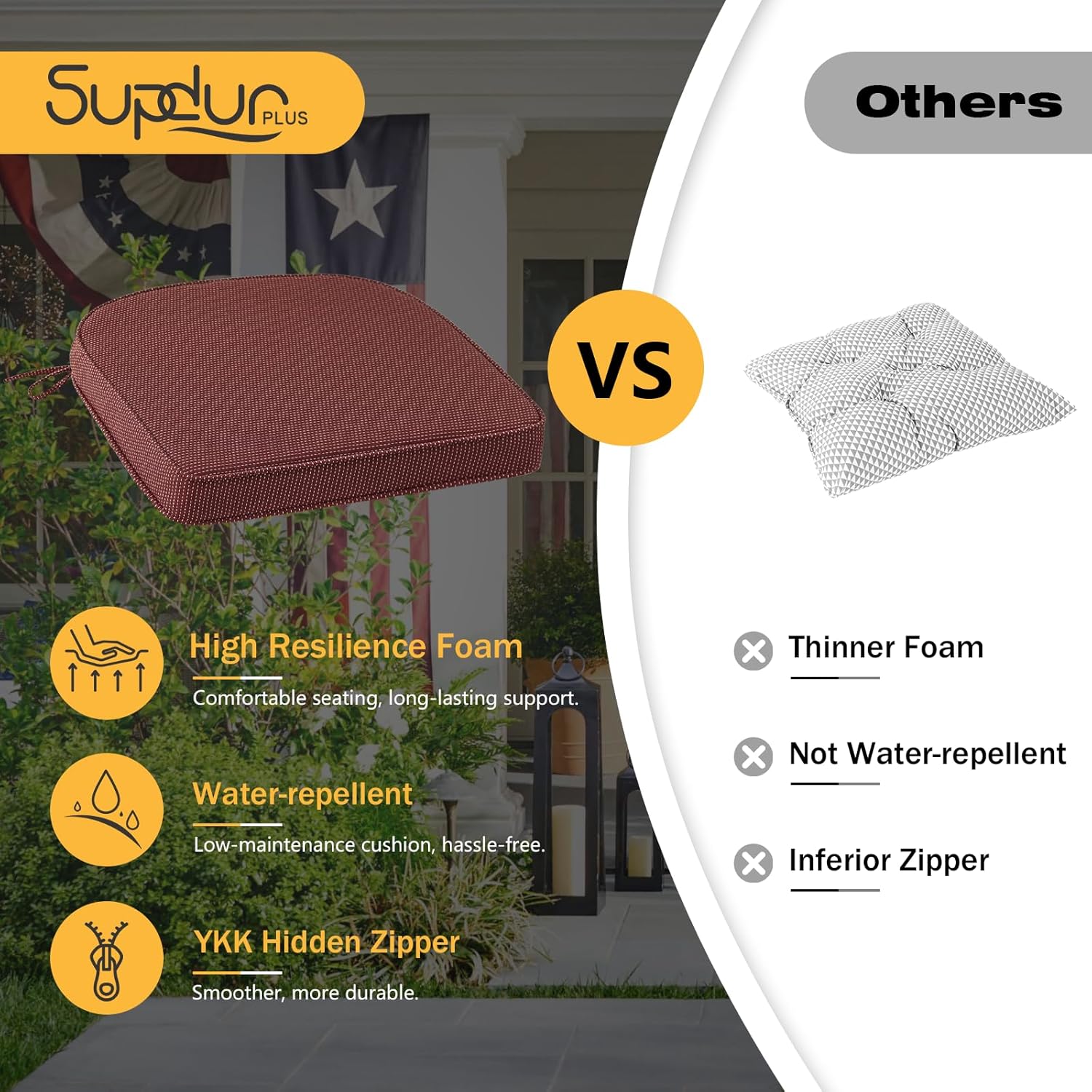 - High-density Foam: Made with thick, high-resilience foam that bounces back quickly after use, providing soft support and lasting comfort.Perfect for long hours of sitting while enjoying the outdoors.