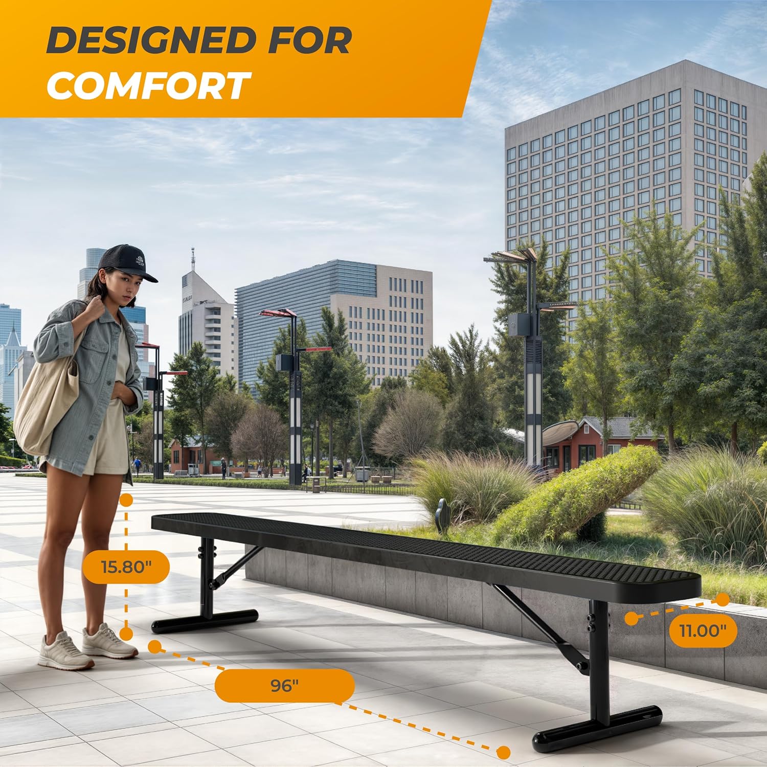 Heavy-Duty Outdoor Metal Bench, Thermoplastic-Coated, Portable, Weatherproof, Commercial-Grade for Parks, Gardens, Patios, Stores & More (8 Ft - Portable, Black)