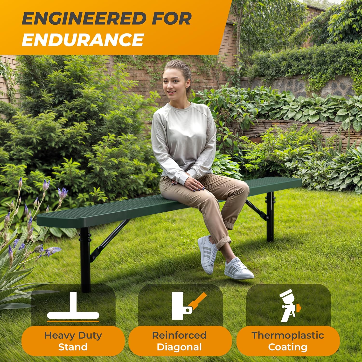 Heavy-Duty Outdoor Metal Bench, Thermoplastic-Coated, Inground, Weatherproof, Commercial-Grade for Parks, Gardens, Patios, Stores & More (8 Ft - Inground, Green)