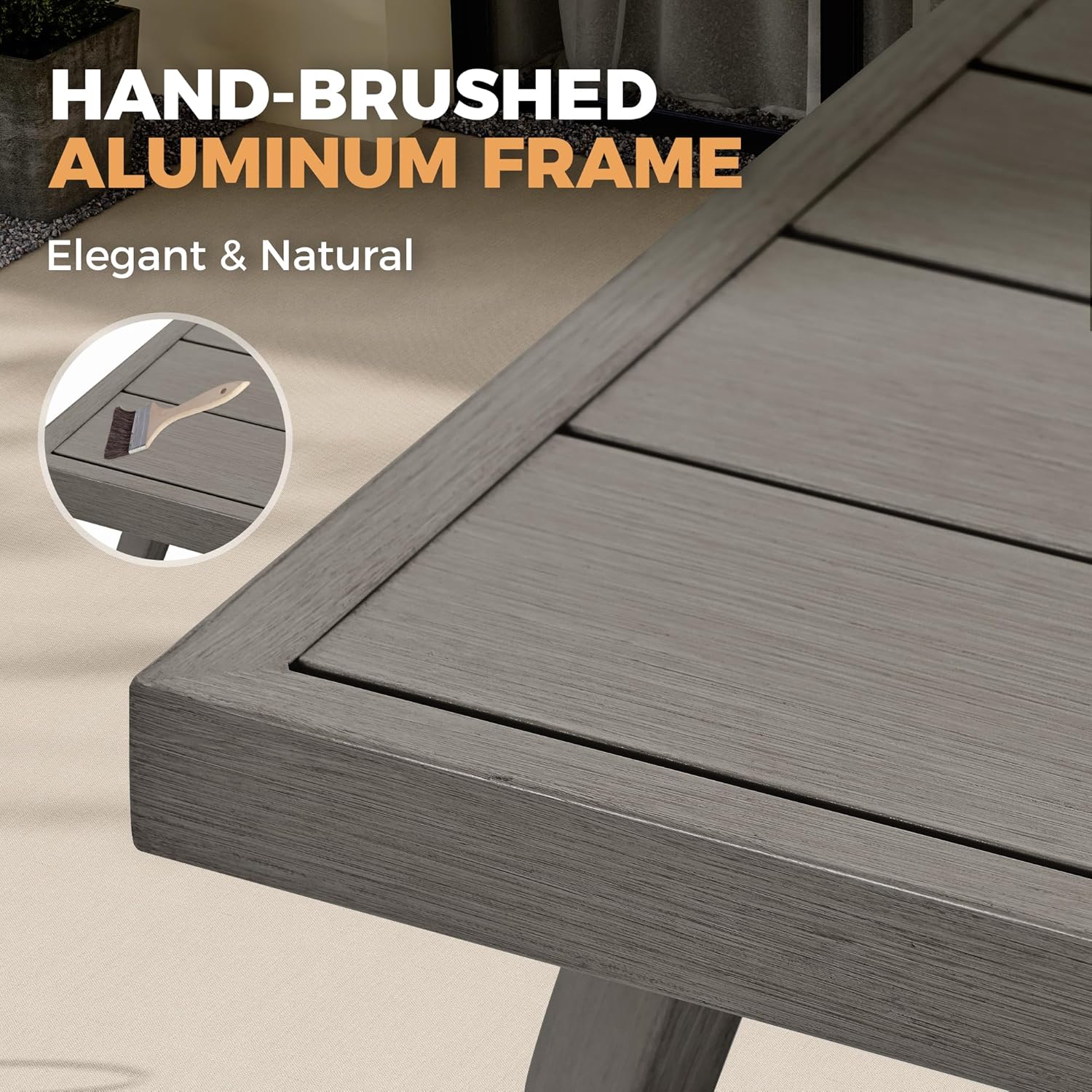 - 【Aluminum Frame】The lightweight aluminum frame of the dining set ensures that our outdoor dining table is easy to move yet will not rust. Aluminum is sturdy and will last a long time in your yard or on your deck, patio, or porch.