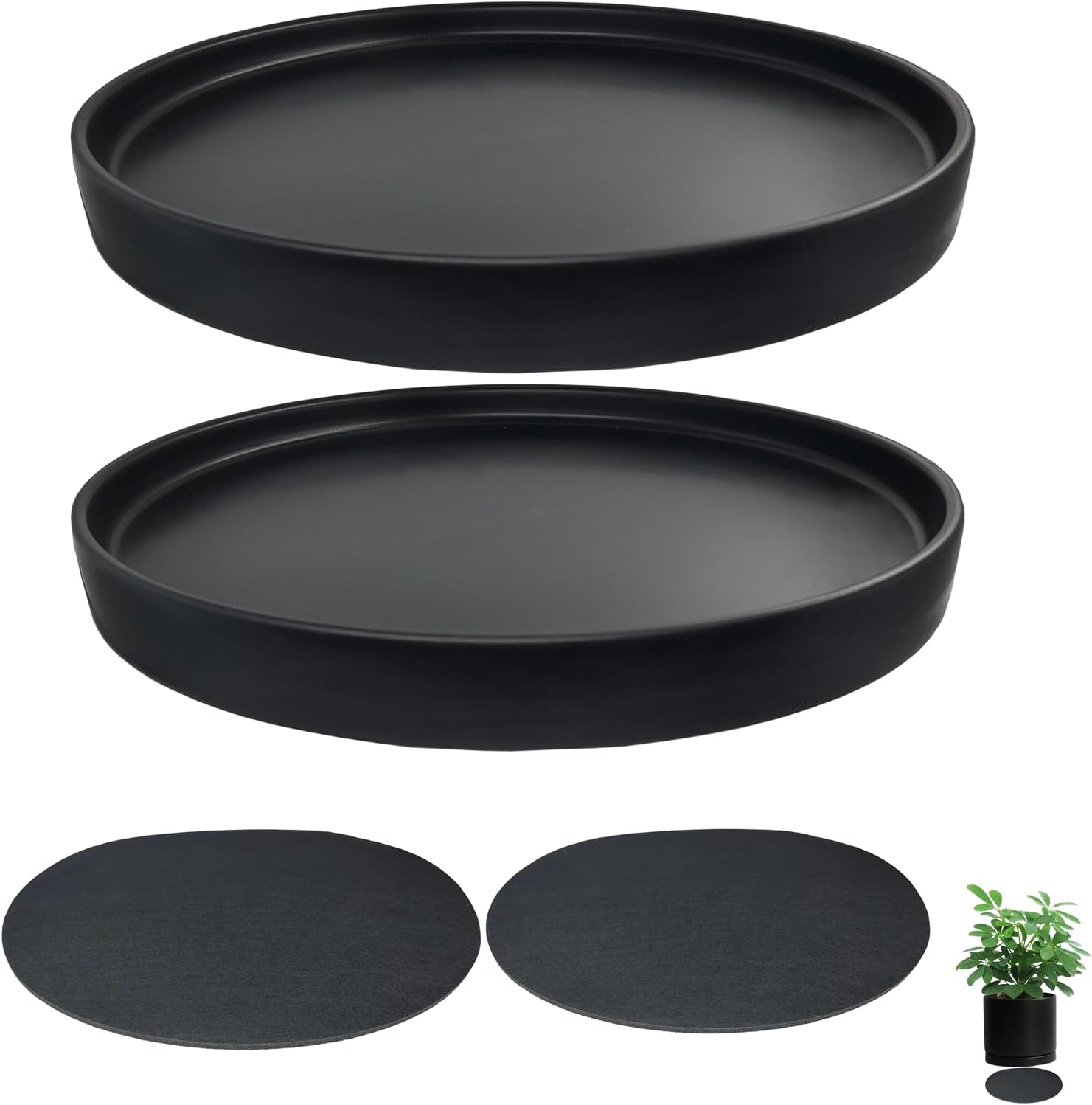 Ceramic Plant Saucer Pot Tray 2 pack-12 Inch, Planter Saucers 4 5 6 7 8 9 10 11 12 Inch for Indoors Outdoor, Durable Sturdy Flower Drainage Tray for Glazed Pots Base (12.5 Inch-2-Black)