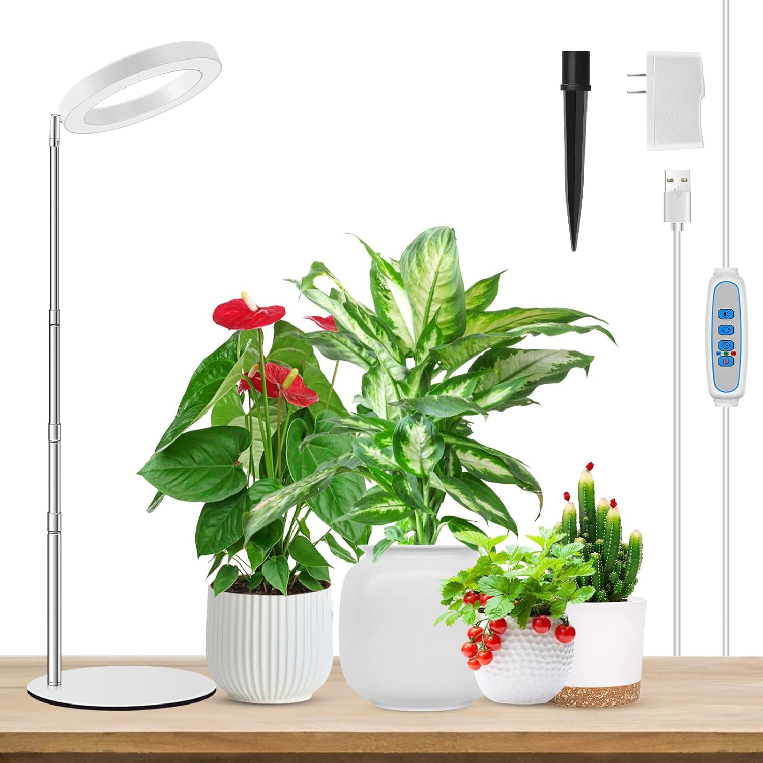 Grow Lights for Indoor Plants, Full Spectrum Plant Lights for Indoor Growing, 9.8"-37.4" Height Adjustable Desk Grow Lamp with Auto Timer 6/12/16Hrs, 3 Optional Spectrums, 5 Brightness,1 Pack