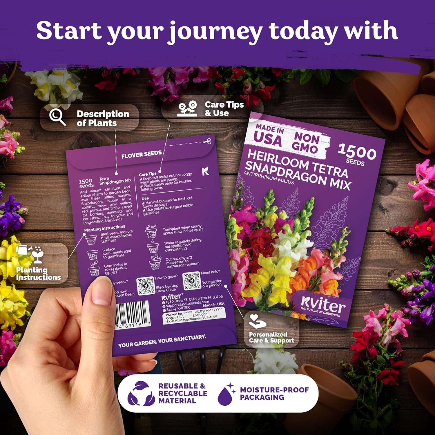 KVITER 1,500 Tetra Mix Snapdragon seeds (Antirrhinum Majus) – Heirloom & Organic Tall Snap Dragon Mix, Annual Flower Garden seeds, Cut Flower Seeds for Planting – Ideal for Outdoor Garden & Containers