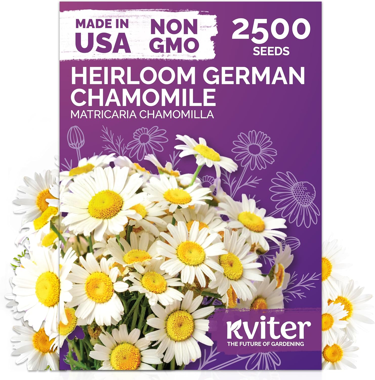 KVITER 2,500 German Chamomile Seeds for Planting (Matricaria Chamomilla/Recutita) – Heirloom & Non-Gmo Medicinal Herb Seeds, Flowers for Remedies & Chamomile Tea Organic – Indoors/Outdoors Herb Garden