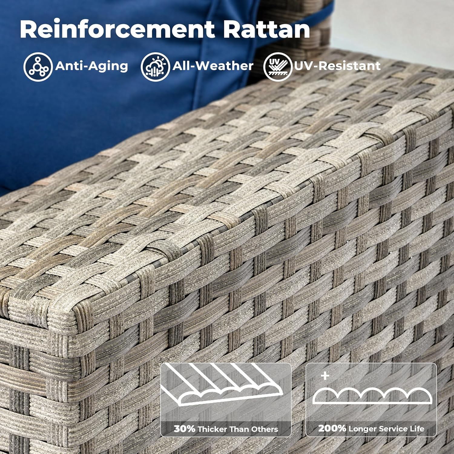 - All-weather Wicker Rattan: Our outdoor sofa sets have very durable wicker rattan for all-weather use and a natural texture with good coloring. The high-quality patio seating made of powder coated steel frame ensures good strength and stability.