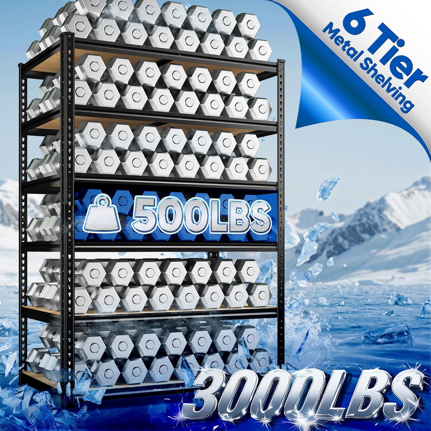 - Special Feature : 3000lbs Heavy Duty Shelving, 6 Tier Metal Shelving, Adjustable