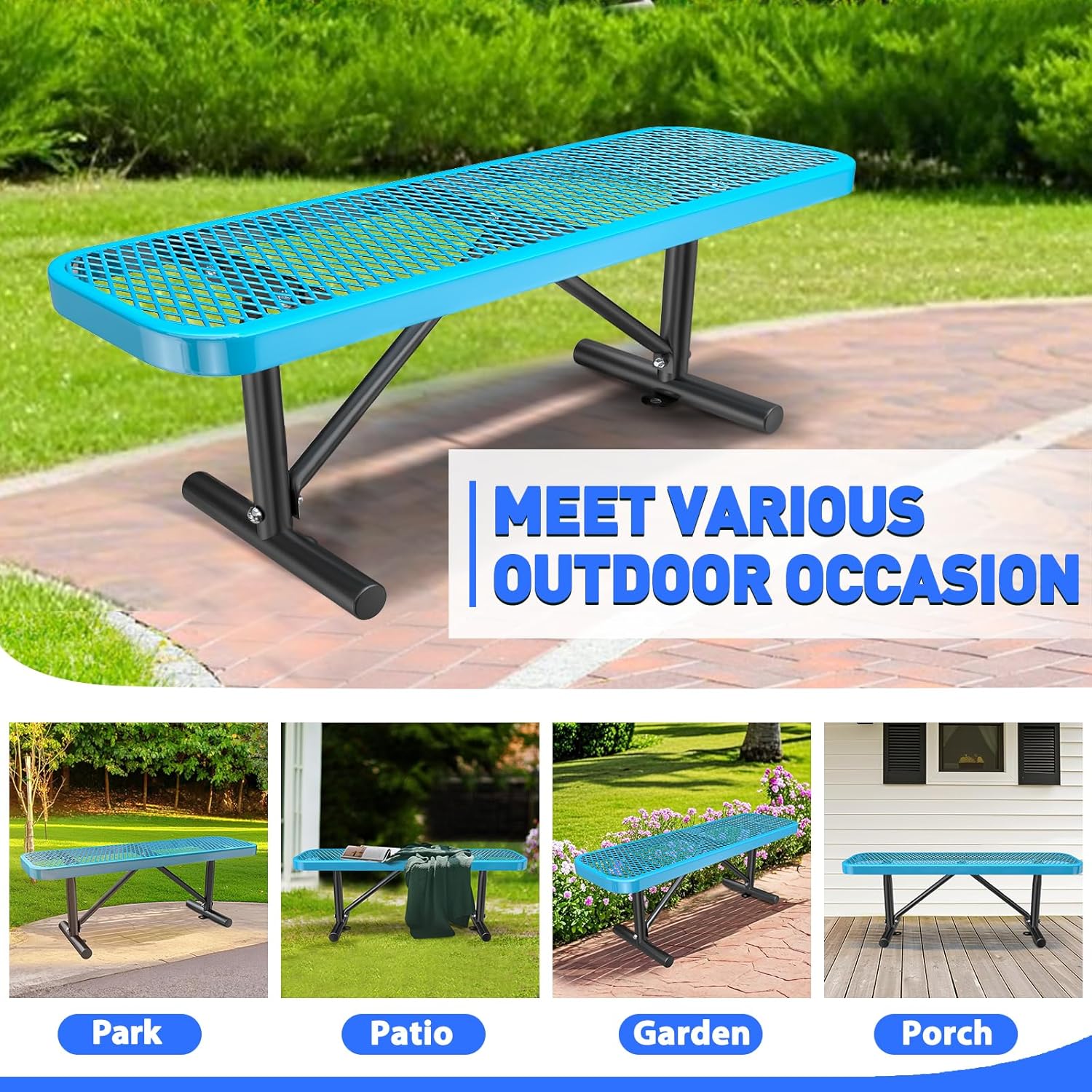- Multi-Occasion Use: Perfect for parks, patios, porches, and gardens, this heavy duty bench features a ground-fixing device for enhanced stability and security. Its robust construction allows it to endure hot sun, rain, snow, salt spray, and strong winds, making it a versatile choice for any outdoor area.