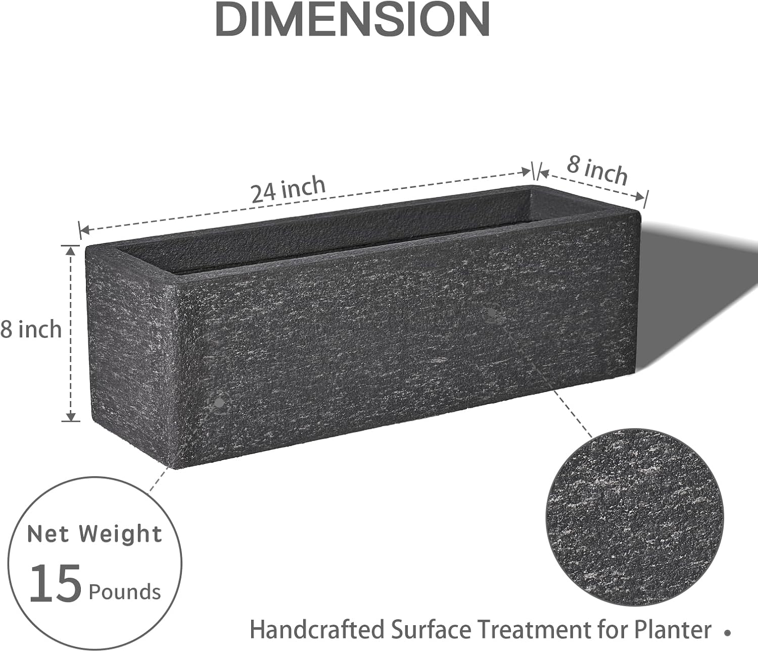 24 Inch Rectangular Concrete Planter,Durable All-Weather Use with Drainage Holes,Large Rectangular Planter for Outdoor Indoor Plants