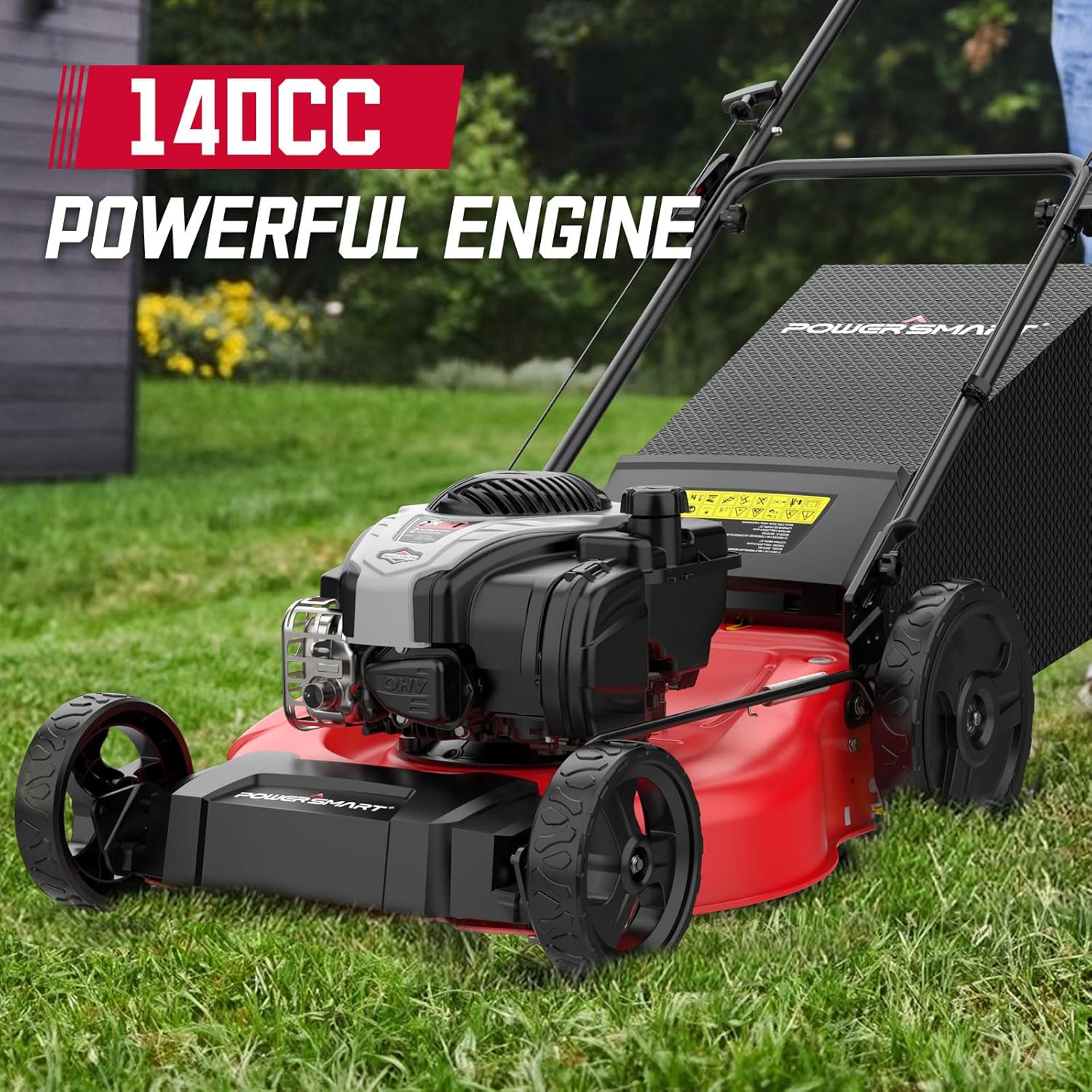 PowerSmart 21" Gas Lawn Mower with 140cc B&S E550 Engine, 3-in-1 with Bagging, High Wheels, Lightweight and Easy Assembly, Cordless Push Lawn Mowers for Garden Yard
