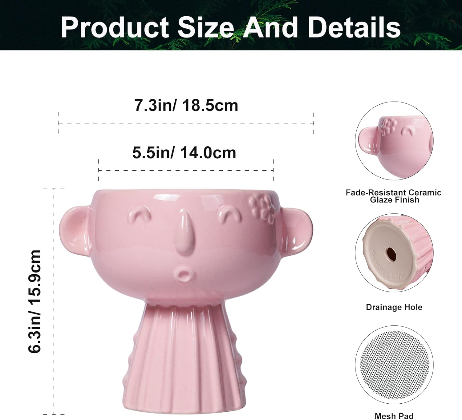 - Package Includes: One ceramic plant pot (including both ears) with a width of 5.5 inches and a height of 6.3 inches, and a mesh is 6 cm. Plants Not Included