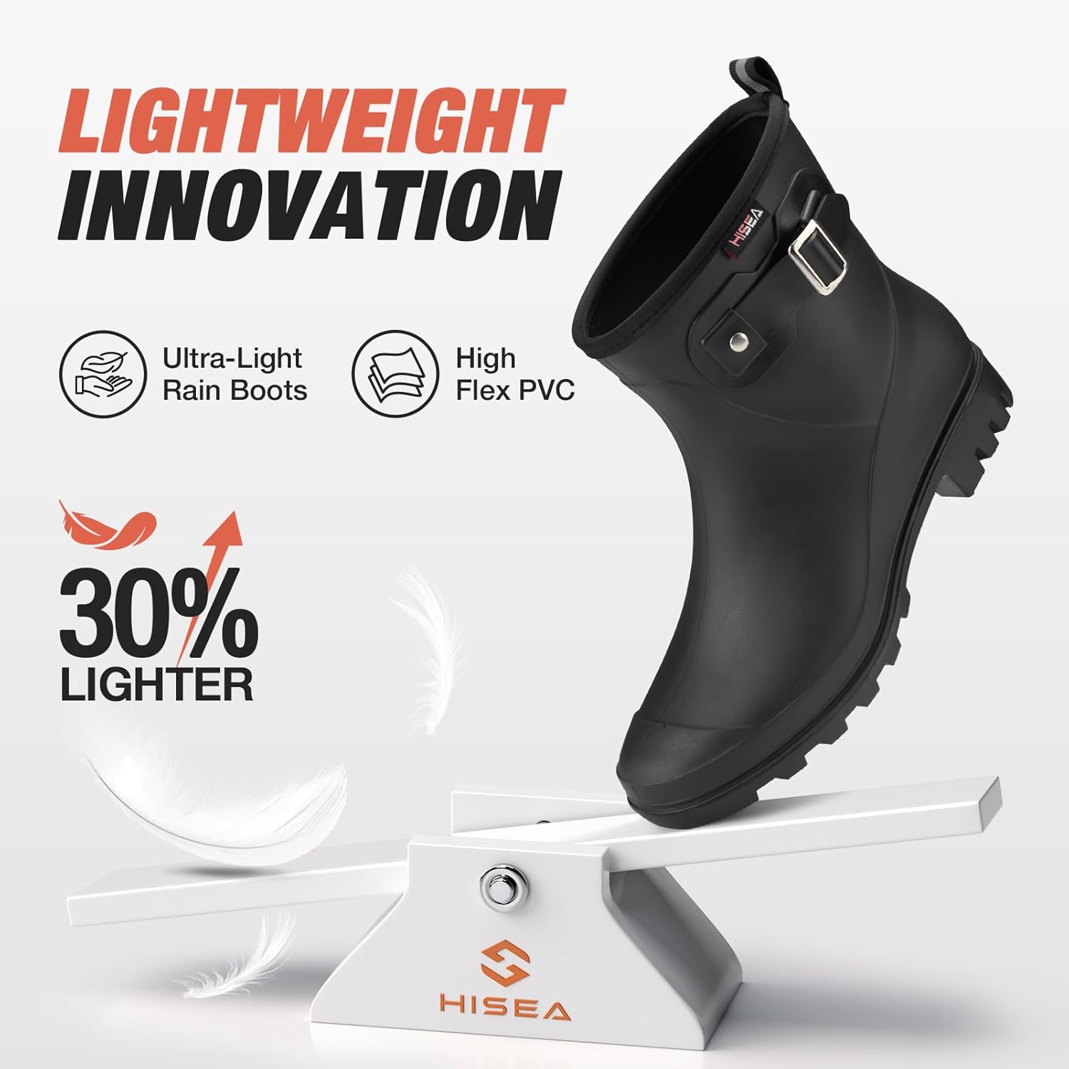 HISEA Women's Ankle Rain Boots Waterproof, Fashion Short Garden Shoes Anti-slip for Women with Comfortable Insole