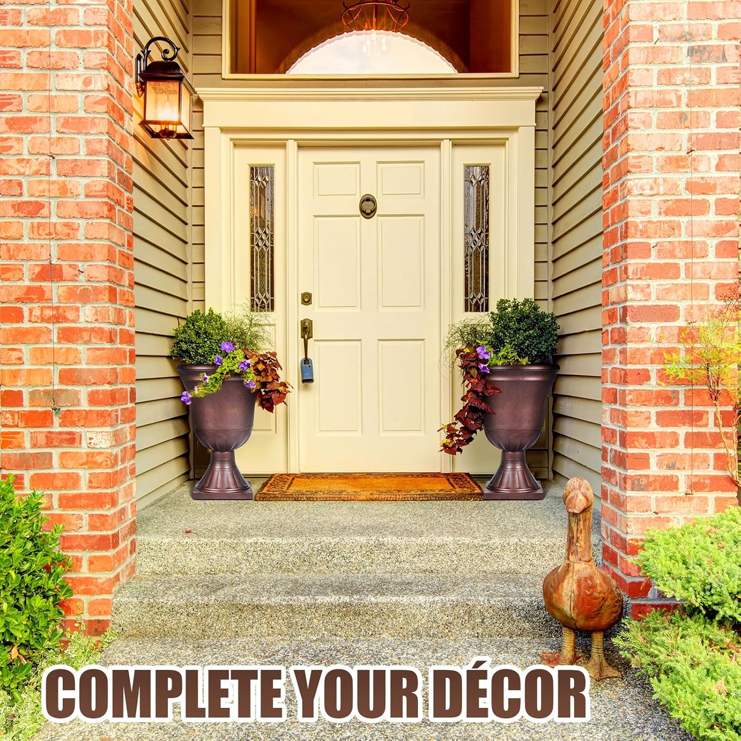- Classic Appearance: these large urn planters are ideal decorations for both indoor and outdoor spaces. You can decorate them on your patio, deck, living room, porch or office. This elegant flower pot will better show your superb planting skills and make your yard decoration more colorful