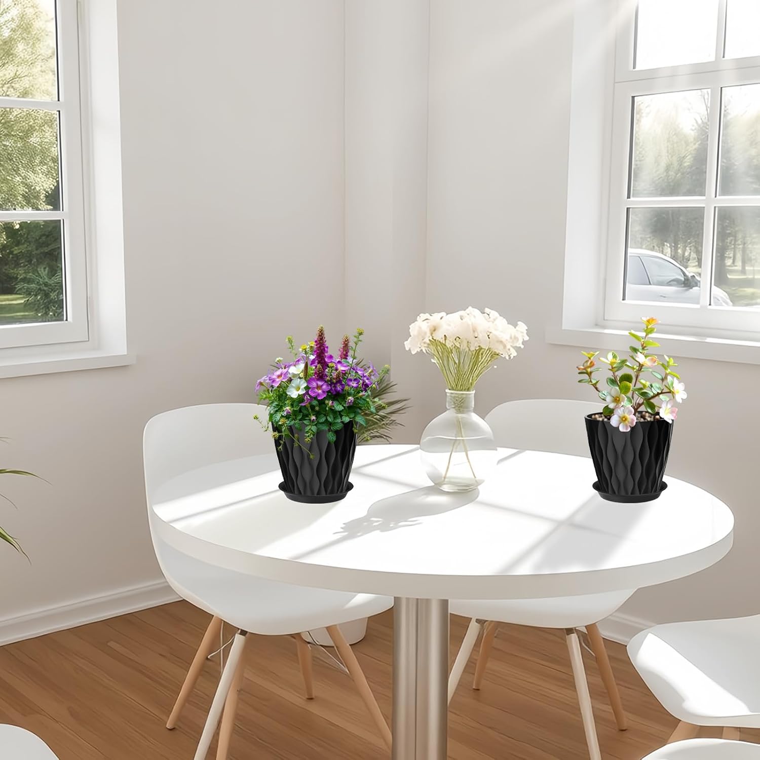 - ๐ง Optimal Plant Health with Drainage & Saucers: Each pot features essential drainage holes to prevent root rot, paired with matching saucers to catch excess water and protect your surfaces. Enjoy worry-free watering!