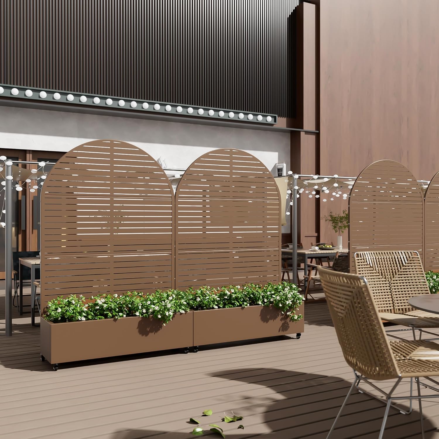 Casaphoria Metal Raised Garden Bed with Trellis and Wheels, 72"x47"x16" Arched Planter Box for Climbing Plants, Vegetables & Vines, Features Drainage Holes and Privacy Screen (Brown-Louvered)