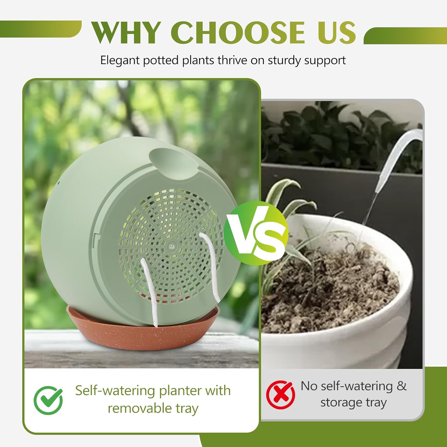 - 【Self-Watering Hanging Flower Pots with Removable Saucer】The innovative recessed design under each hanging indoor planter maintains optimal water levels for your plants and serves as a reservoir for consistent watering. This feature eliminates the hassle of watering plants while you're away on business trips or traveling, thanks to our hanging plant pot.