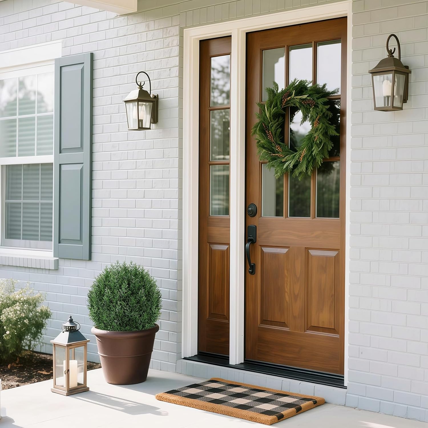 - [Versatile Usages] Whether staked into garden soil or styled in a decorative planter, the artificial shrubs for outdoors blend seamlessly into any setting. From modern patios and cozy front porches to bright living rooms and festive holiday corners, the faux pine plants are a low-maintenance way to keep your space feeling fresh, welcoming, and seasonally on point—all year long. They also make a thoughtful gift for anyone who loves greenery without the hassle.
