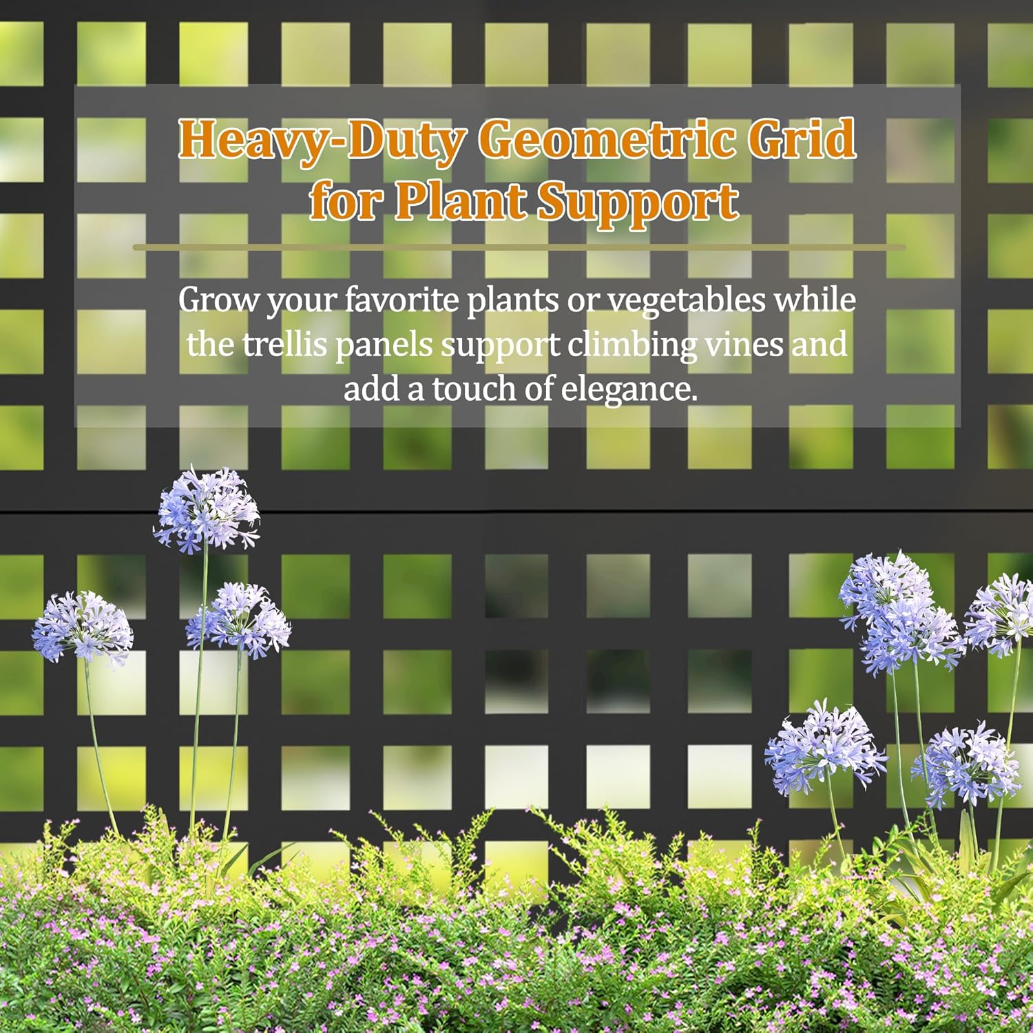 - 🛡️【Outdoor Privacy Screen & Metal Planter Box with Trellis】Use this metal planter box with trellis to create a natural divider on your patio, balcony, or yard. It’s more than just a garden raised bed for climbing plants—it’s also a beautiful metal planter with privacy screen that offers shade and separation. The sleek black frame and vertical lines of this metal planter box with trellis make it both decorative and practical.