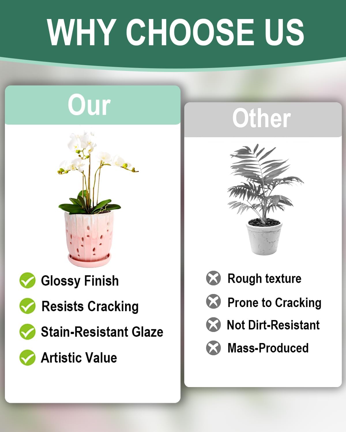 - 【Quality Ceramic Material】Crafted from premium high-fired ceramic, this orchid pot delivers lasting durability with a scratch-resistant glossy glaze that adds sophisticated elegance