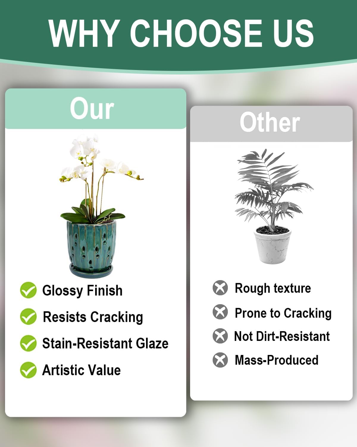 - 【Quality Ceramic Material】Crafted from premium high-fired ceramic, this orchid pot delivers lasting durability with a scratch-resistant glossy glaze that adds sophisticated elegance