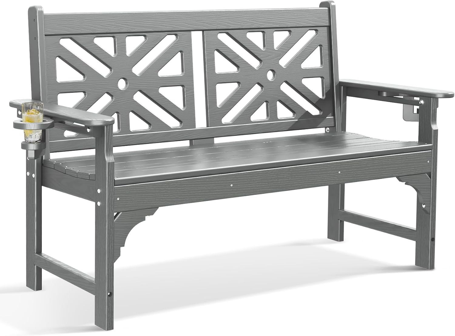 nalone Outdoor Bench with Cup Holders, HDPE All Weather Porch Bench Load up to 800 Lbs, 2-Person Garden Benches Rot-Proof Fade Proof for Patio, Porch, and Park (Grey)