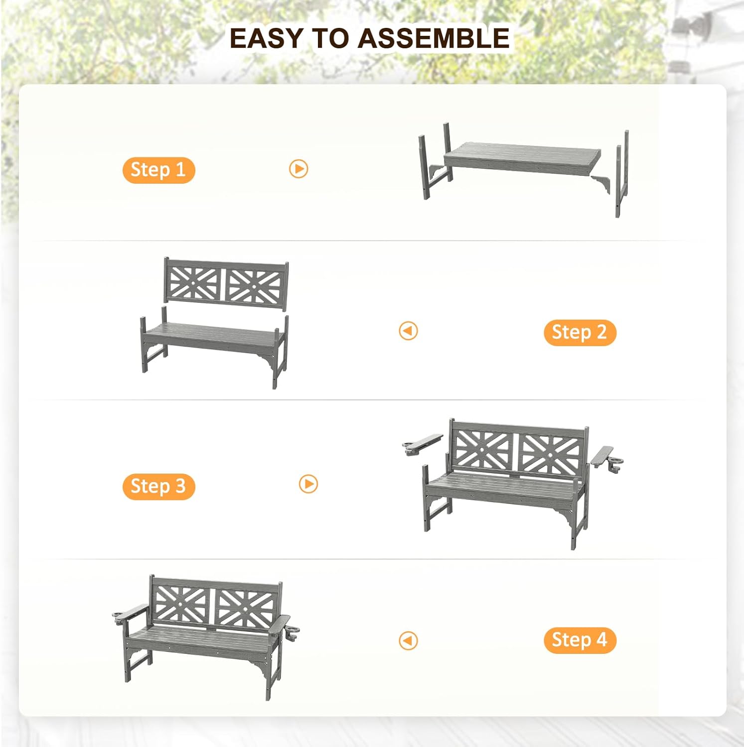 - Easy Assembly & Low Maintenance - With detailed instructions, this outdoor bench only takes 20 min to put together, and no additional tools are required. It is water and all-weather resistant, all you need to do is wipe it with a wet cloth. You can ask for a replacement part or for help at any time, a professional customer service team will reply to you within 24 hours. NALONE store also has other HDPE tables & chairs!