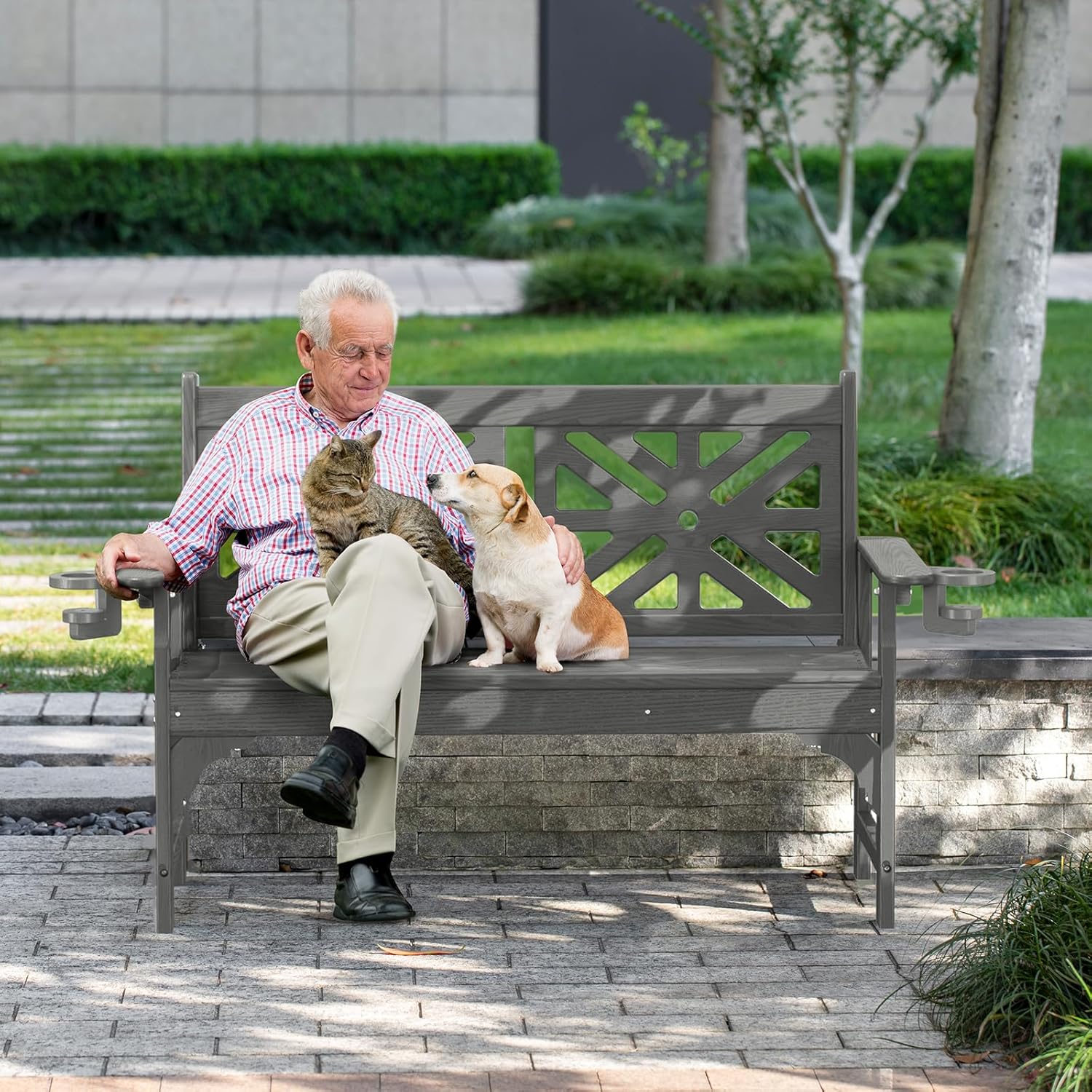 - Elegant Design & Wide Usage - The simple and elegant window grille backrest design makes our bench more stylish. This outdoor bench is the perfect match for any outdoor decor style. Its a nice addition to any garden, patio, front porch or outdoor space. A polished burr-free surface can also protect your hands from scratches.