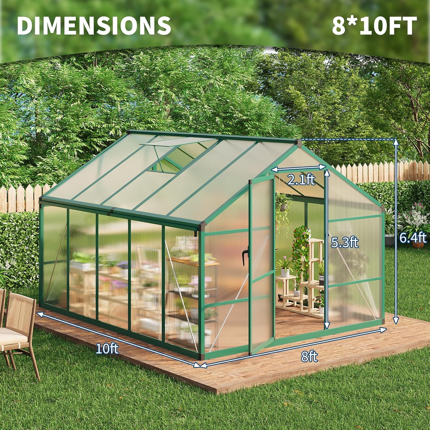 - 【Resilient Construction】Designed to endure challenging weather, our greenhouse features 720g/m² polycarbonate panels and a solid aluminum steel frame. This design ensures stability and protection during heavy rain and gale. Keep your plants safe and thriving in a reliable greenhouse built to last.