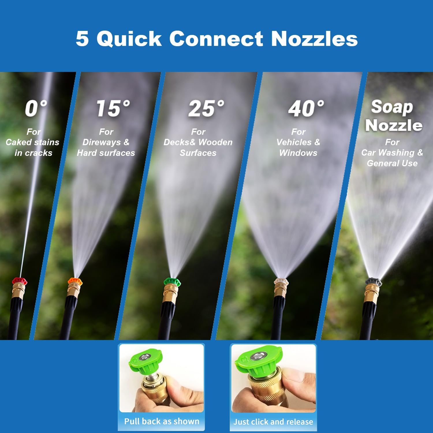 - UPGRADED ACCESSORIES: The Commowner portable pressure washer 2.0 comes with top-of-the-line accessories for a thorough cleaning experience; Navigate with ease using the 33-foot real rubber hose, choose from 5 QC nozzles (0°, 15°, 25°, 40°, soap) for different cleaning needs, and enjoy additional features like the 500ml detergent tank, metal lance, spray gun, cleaning pin, welcome guide and 20-foot electric cord