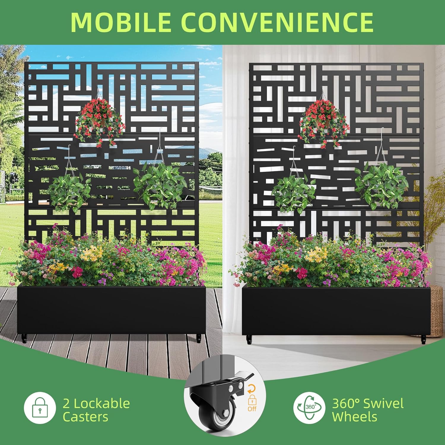 Casaphoria Metal Raised Garden Bed with Trellis and Wheels, 72"x47"x16" Planter Box for Climbing Plants, Vegetables & Vines, Features Drainage Holes and Privacy Screen, Black(Helen&Gerald)