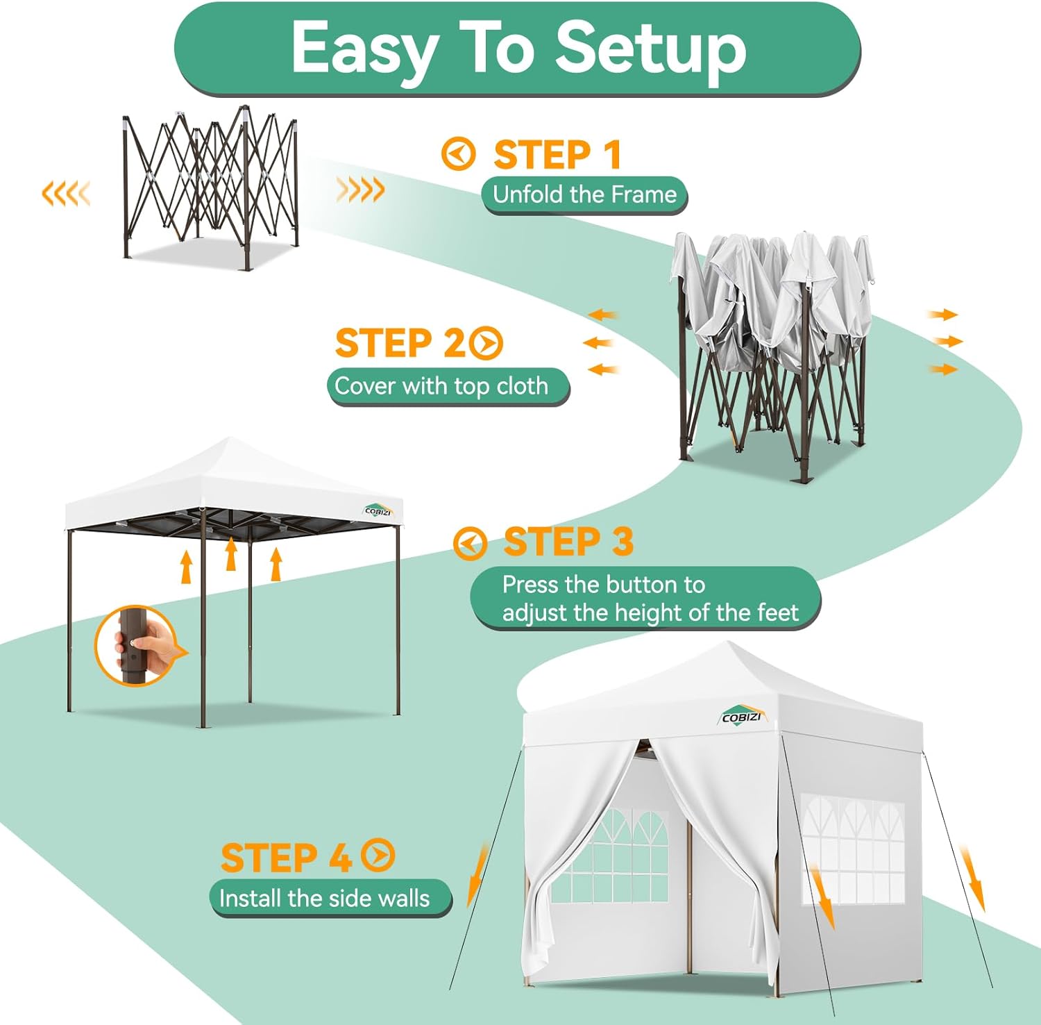 COBIZI 10x10 Pop Up Canopy Tent Heavy Duty with 4 Sidewall, Commercial Outdoor Easy Pop Up Gazebo for Party Wedding All Weather Waterproof UV 50+ with Carry Bag(Leg Upgraded),White