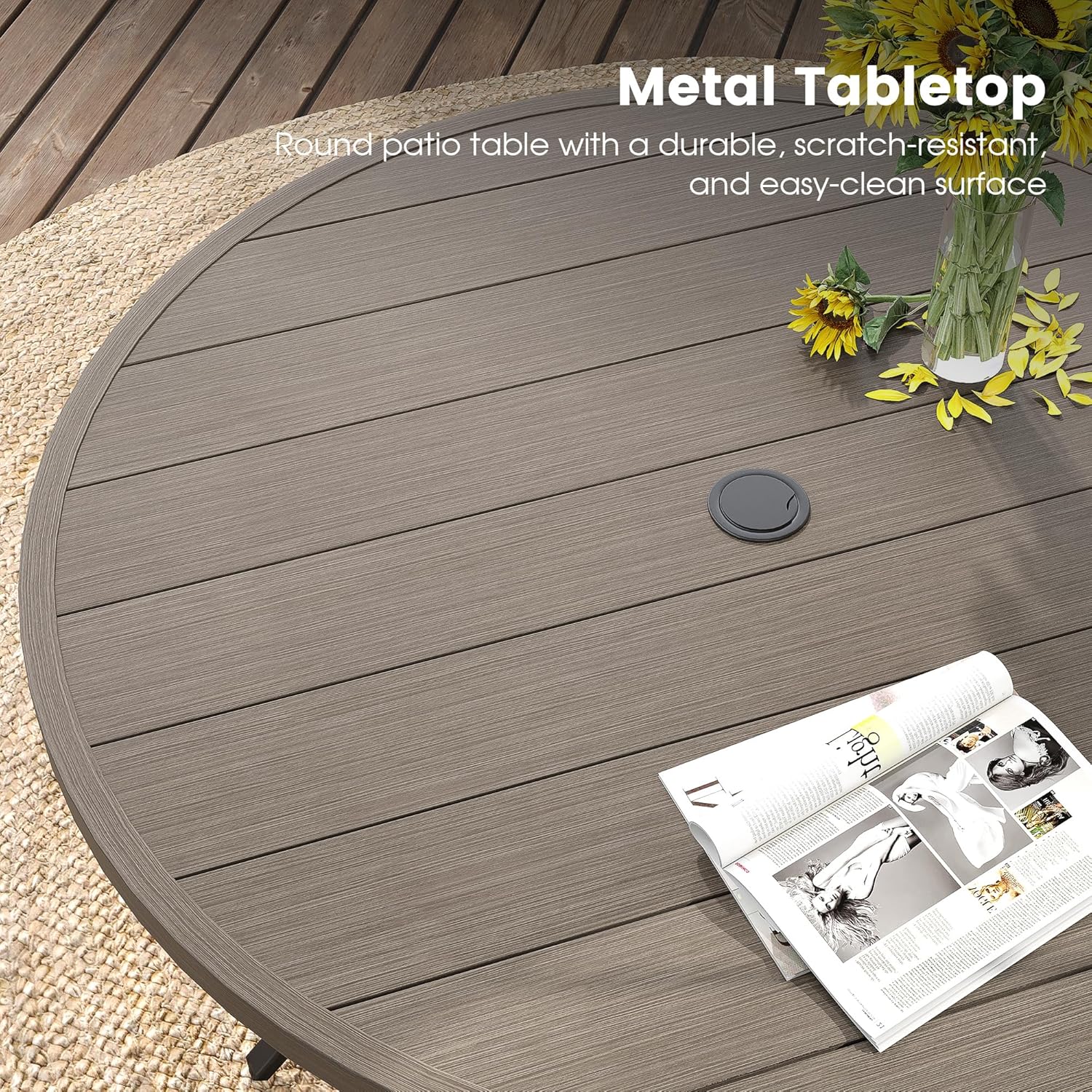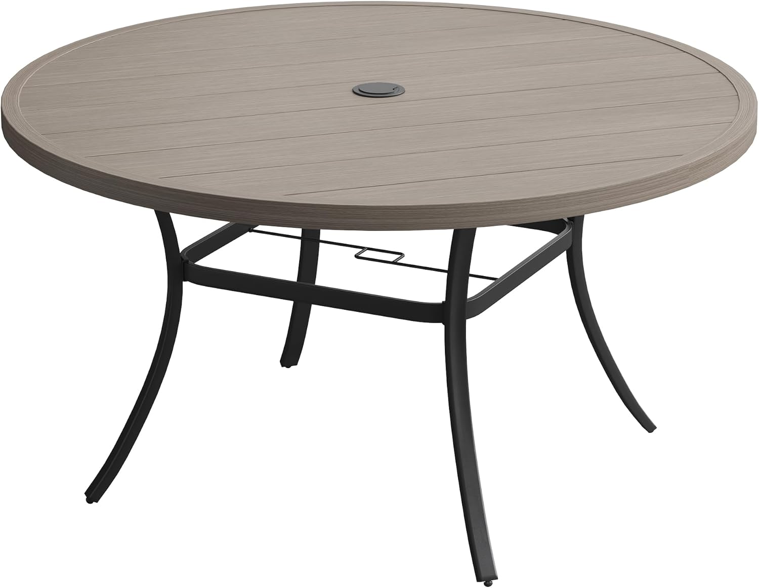 DIFY 50" Round Outdoor Patio Dining Table for 6, Metal Patio Table with 1.57" Adjustable Umbrella Hole, All-Weather Dining Furniture Table for Backyard Lawn Garden, Grey Wood-Like