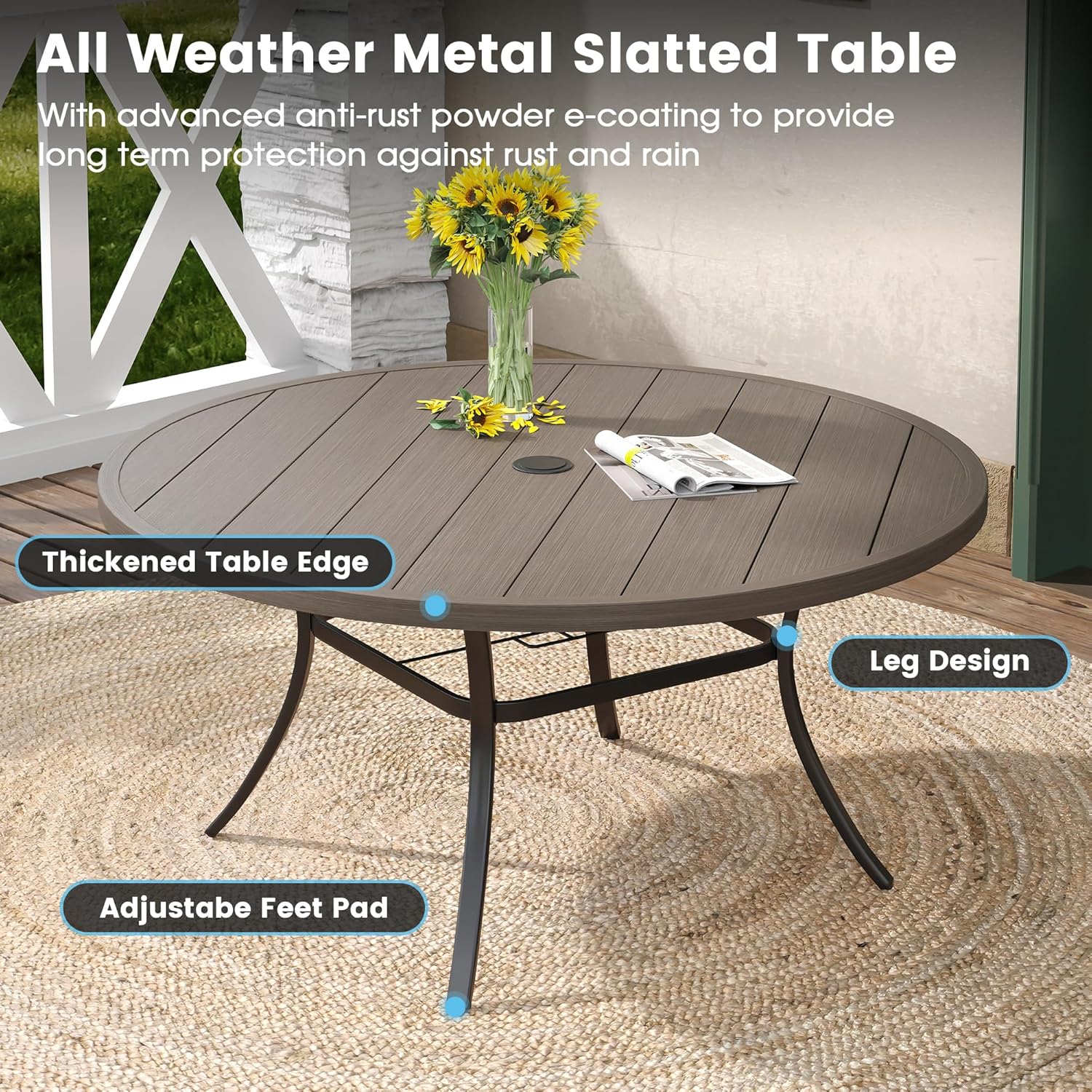 - 【Non-slip Foot Pads】The table features adjustable non-slip foot pads to prevent scratches on outdoor floors. They also help it stay stable on different surfaces or in bad weather, no need to worry about it shifting or sliding when dining outdoors