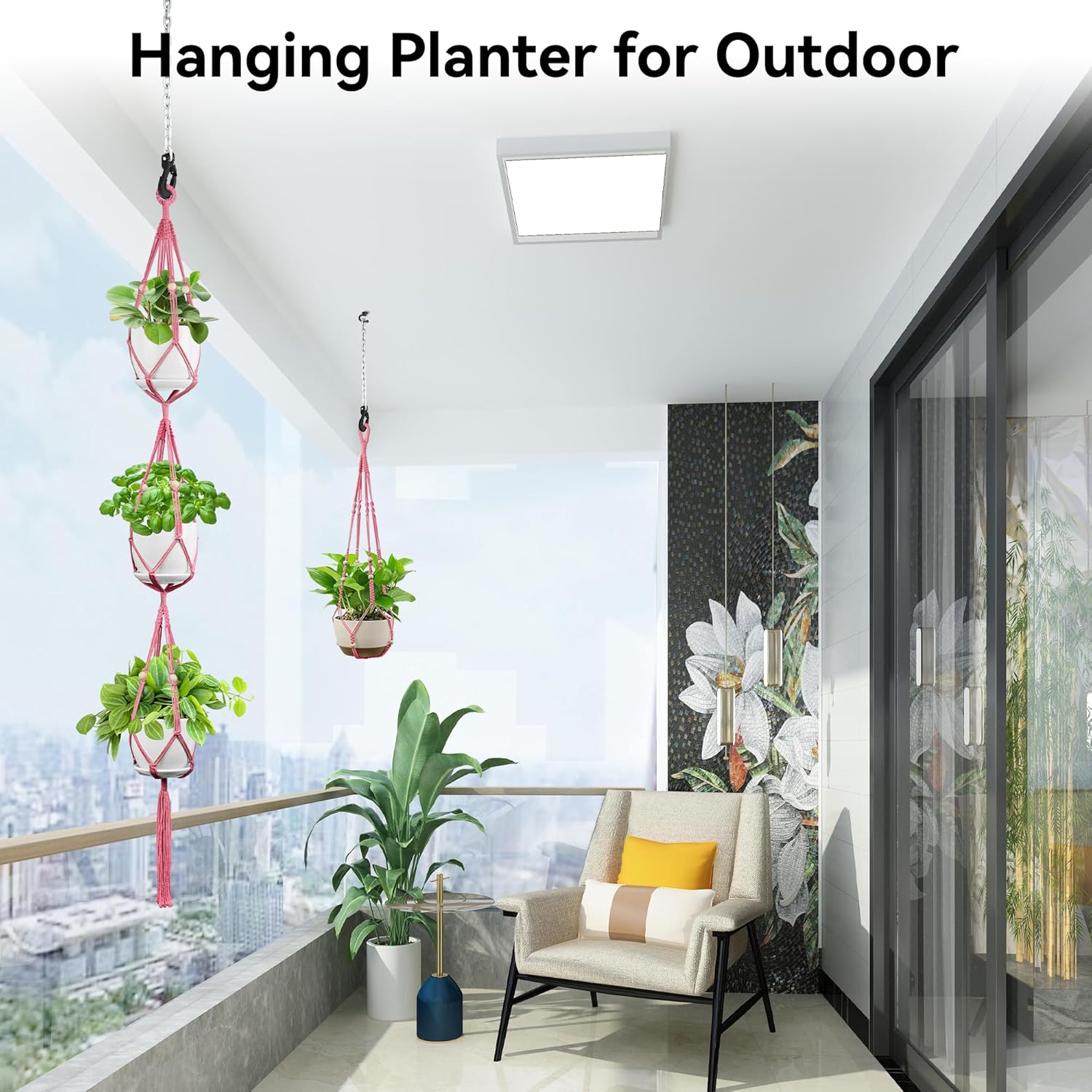 USLAI Macrame Plant Hanger Indoor Outdoor, Up to 4-15 inch Pot, Heavy 20lb Planters, Extra Long Strong Hanging Planter Basket Holder, Boho Home Decor, 35+72 Inch, Pink (POTS NOT Included)