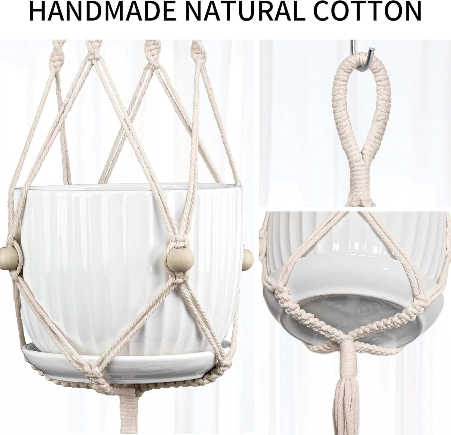 - Handmade for Durability: Crafted from natural cotton rope, this hanging basket is meticulously handwoven for long-lasting strength and support; Fits 4 to 12 inches pots and supports up to 22 lbs, keeping your plants safely suspended without tilting