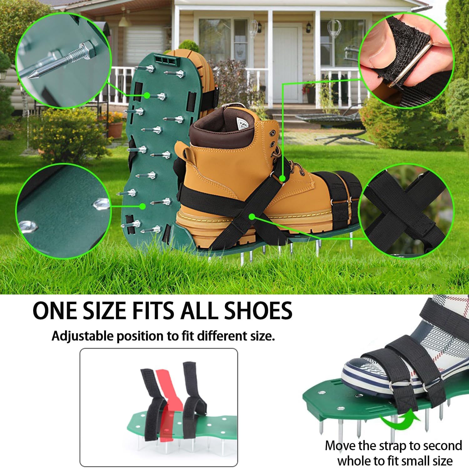 - PERFECT LAWN CARE TOOL - Lawn aerator spike shoes are not only aerate established areas of your garden or lawn, but also provide a good workout for legs, say goodbye to heavy and expensive lawn equipment, , save your money and time