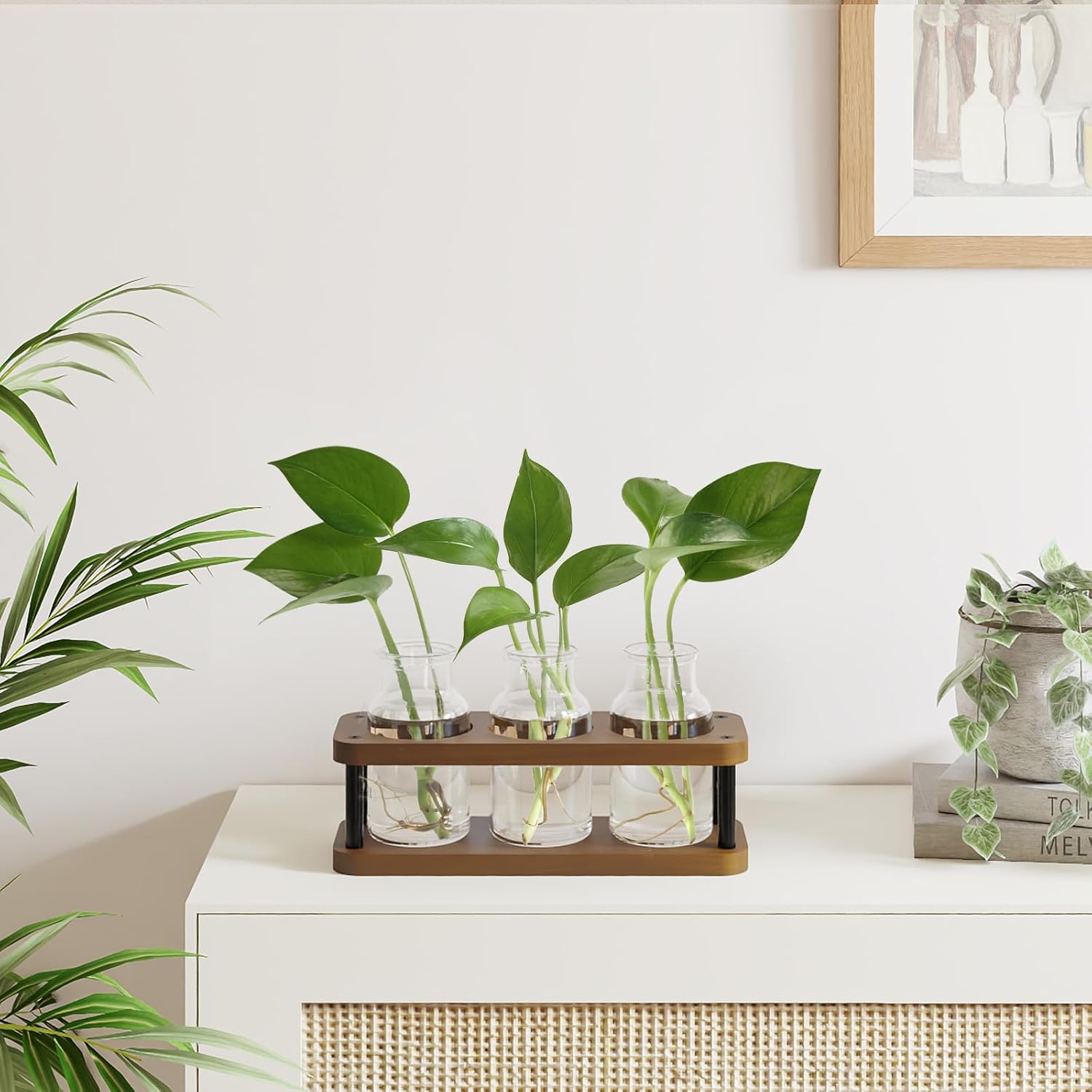- Cute Propagation Station - The desktop propagation vases provides a simple and stylish way to propagate hydroponic plant cuttings or flower buds. Each propagation jar provides ample space for rooting plants, allowing you to observe the root growth and enjoy the fun of plant care