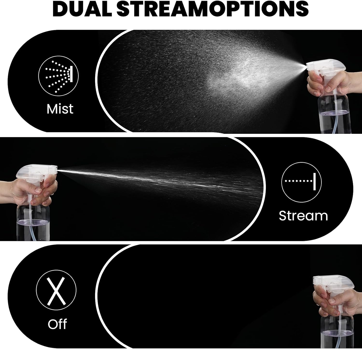 - Versatile Applications: Switch to mist mode for a soft, fine spray, perfect for watering delicate plants, or switch to directed stream mode for deep cleaning. This refillable glass spray bottle is suitable for household cleaning, gardening, and beauty treatments, meeting all your spraying needs.