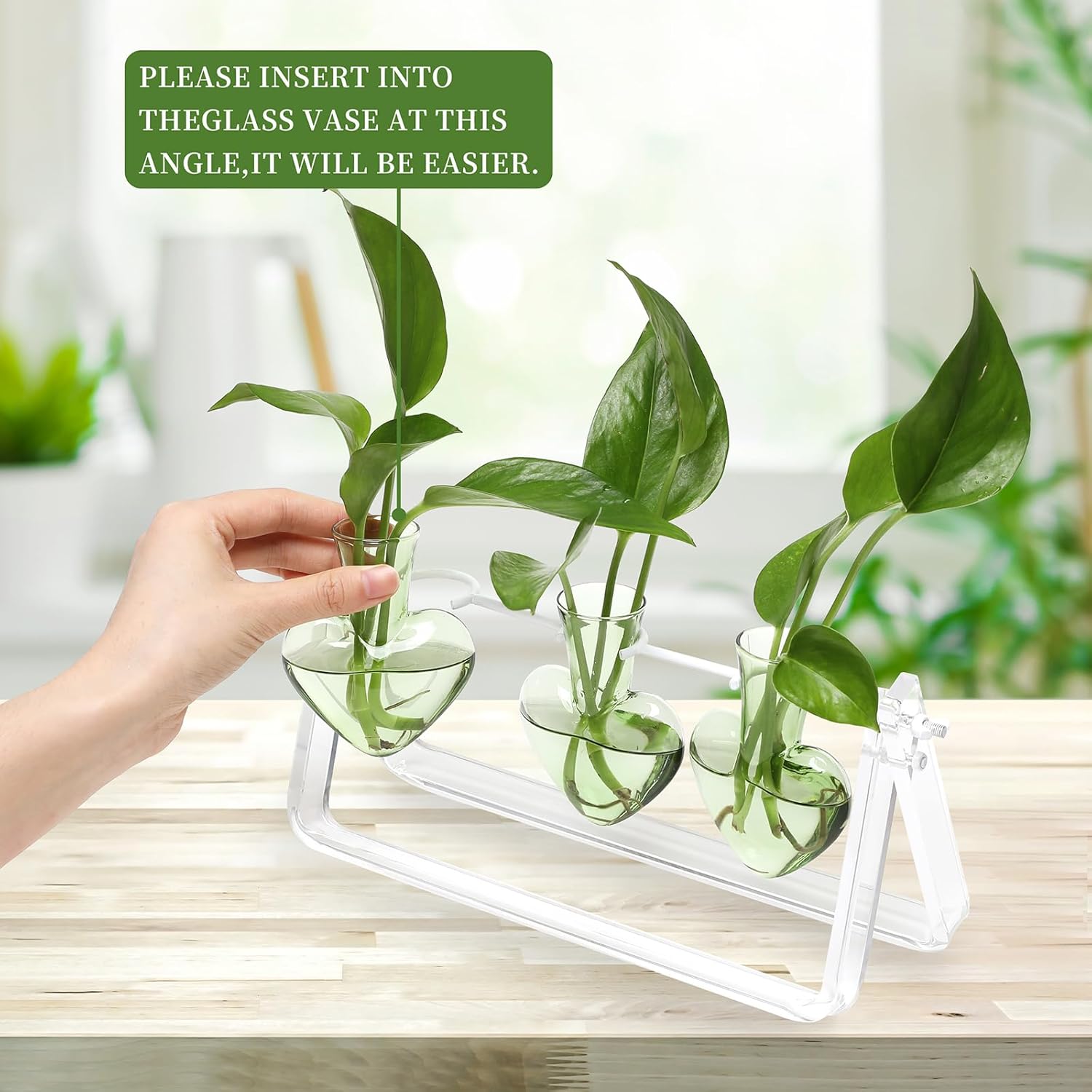 Plant Terrarium Propagation Stations with Wooden Stand Birthday Gifts for Women Plant Stand Indoor Office Home Decor