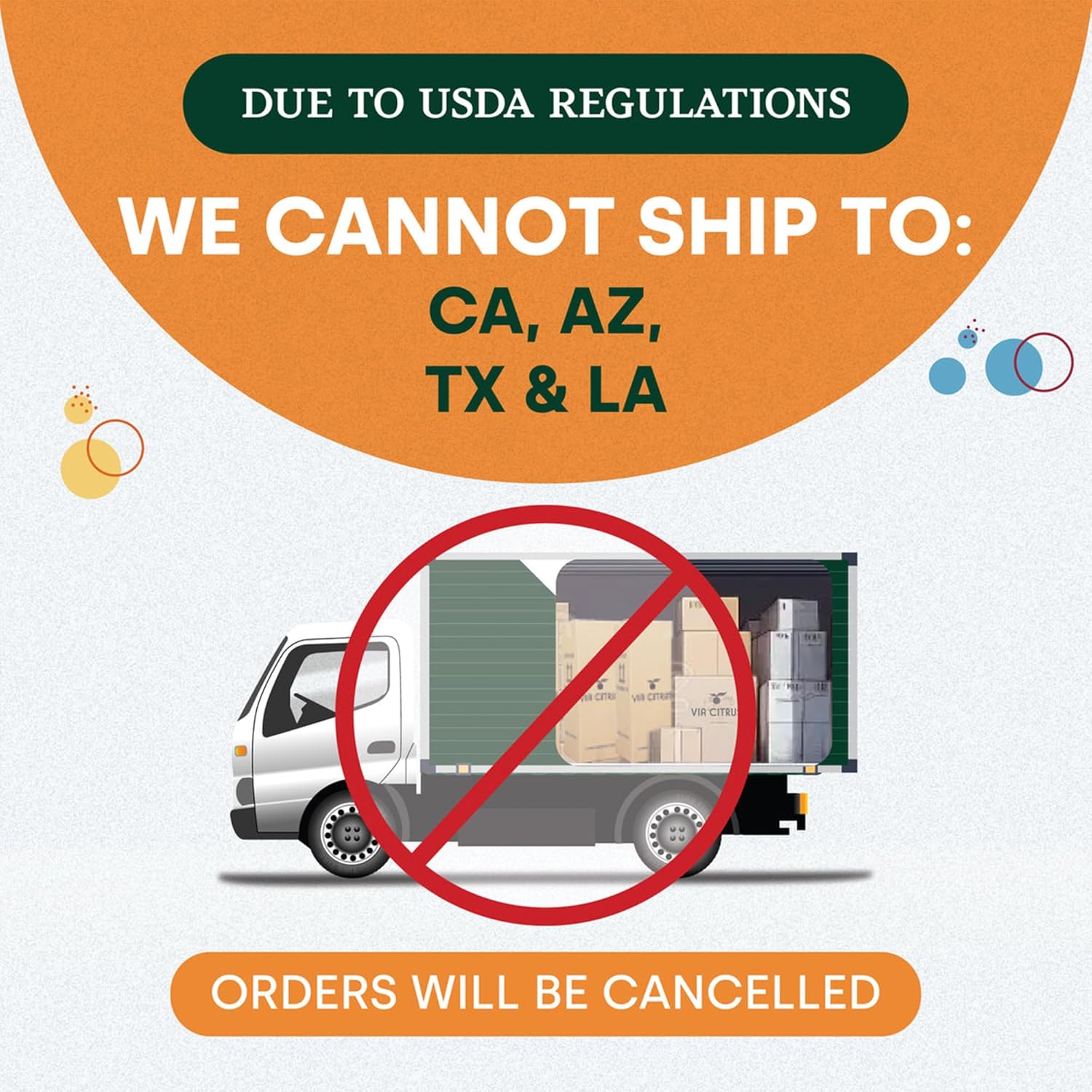 - SHIPPED AS A CAREFULLY GROWN LIVE TREE: Our Persian lime tree is nurtured by experts and shipped in a durable container to ensure it arrives ready to thrive. Ideal for fruit trees live plants, or as a real indoor tree for your patio fruit trees setup. This citrus plant is subject to USDA regulations—we do not ship to freight forwarding locations, hotels, PO Boxes, Military (AFO/FPO), AZ, CA, LA, HI, TX, Puerto Rico, Guam, U.S. Virgin Islands, American Samoa, and Northern Mariana Islands.