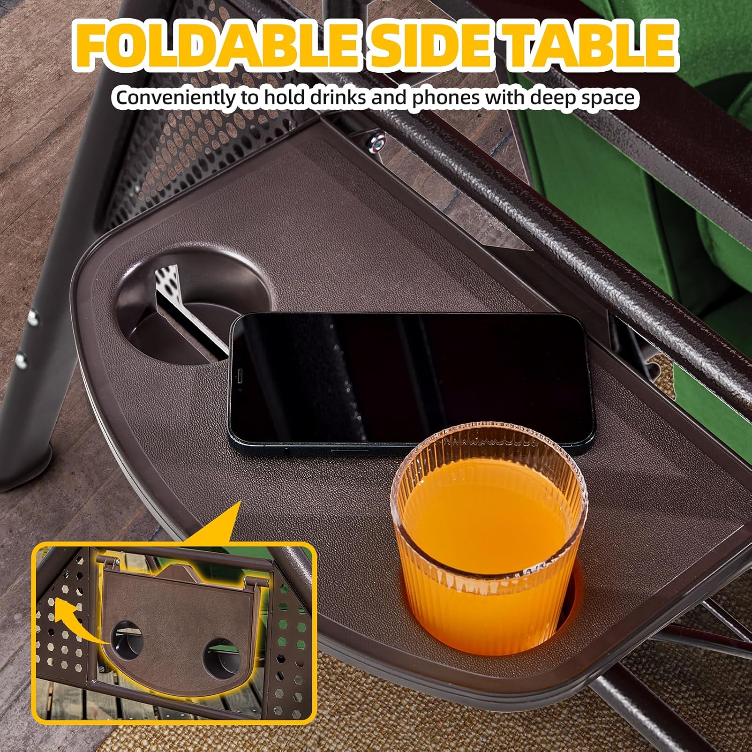 - Convenient Cup Holders & 750 lbs Weight Capacity: Enjoy afternoon tea on your patio swing with canopy! Two cup holders are conveniently placed on each side to keep drinks within reach. Crafted with a heavy-duty steel frame, this patio outdoor swing supports up to 750 lbs, comfortably seating 3 adults — making it the nice outdoor swing for family gatherings