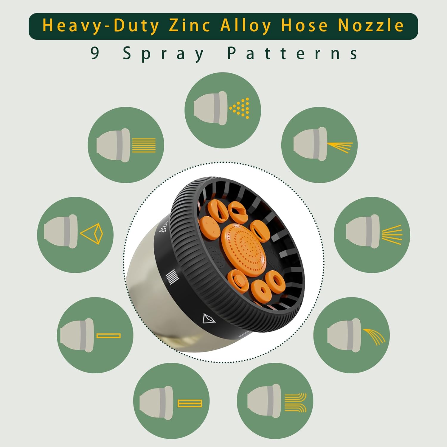 Hose nozzle - High Pressure Garden Hose Nozzle with 9 Adjustable Spray Patterns - Heavy Duty & Leak-Proof Zinc Alloy Spray Nozzles for Outdoor Use, Car Washing, and Watering Plants