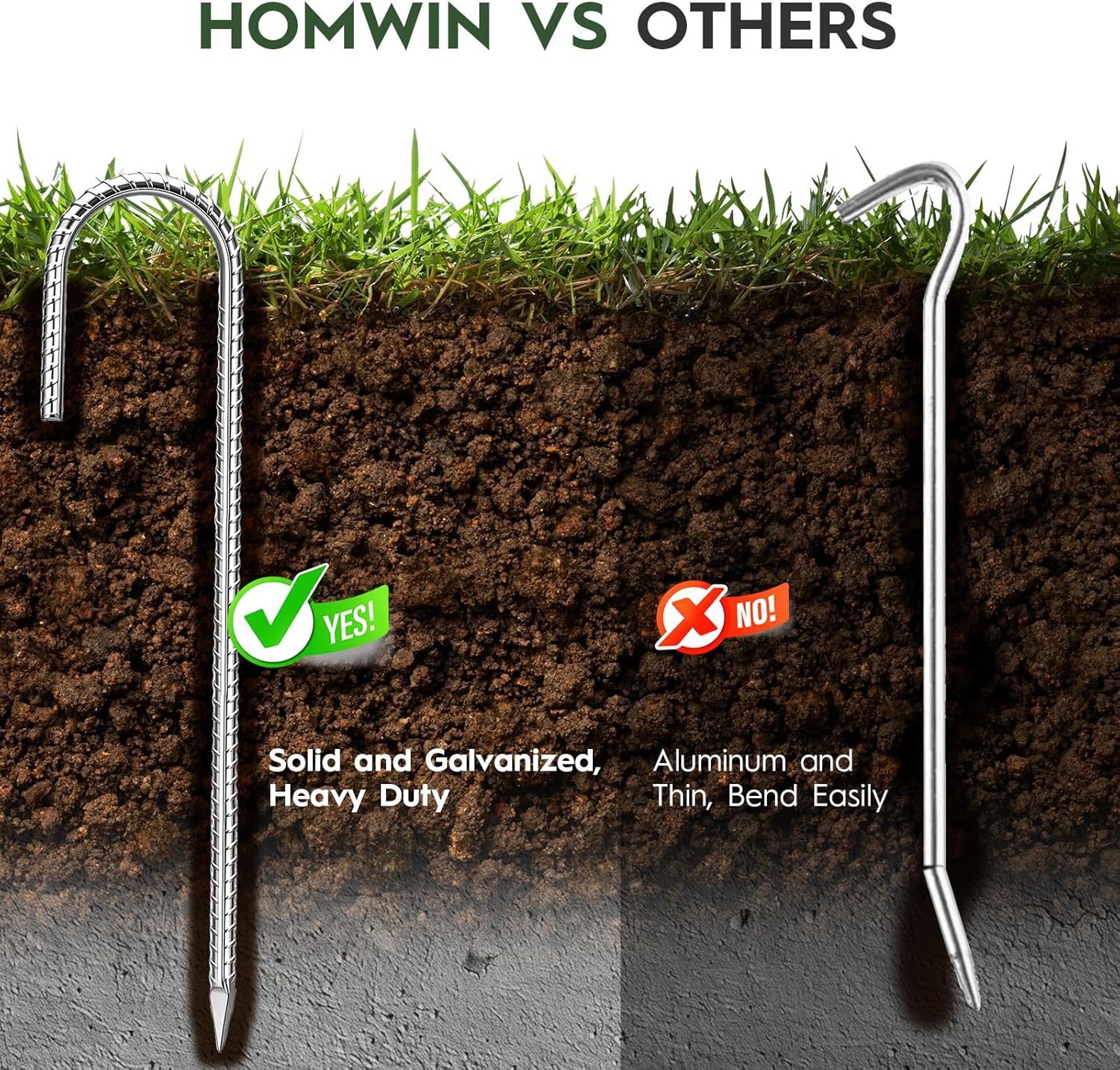 - Robust Uses: These j hook stakes are great for staking tents, holding down projection screens for outdoor movie times, holding young plant winterizing tents in place, holding down trampolines to keep strong winds from picking up and flinging them around the yard, as well as soccer goals, lawn furniture, and other applications.