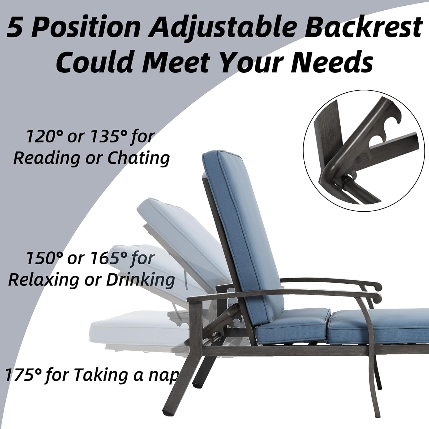 - - 5-Position Adjustable Backrest: The ergonomically designed adjustable backrest can be adjusted to suit your needs, providing you with the perfect lumbar support for the ultimate relaxation experience after sunbathing or exercising outdoors