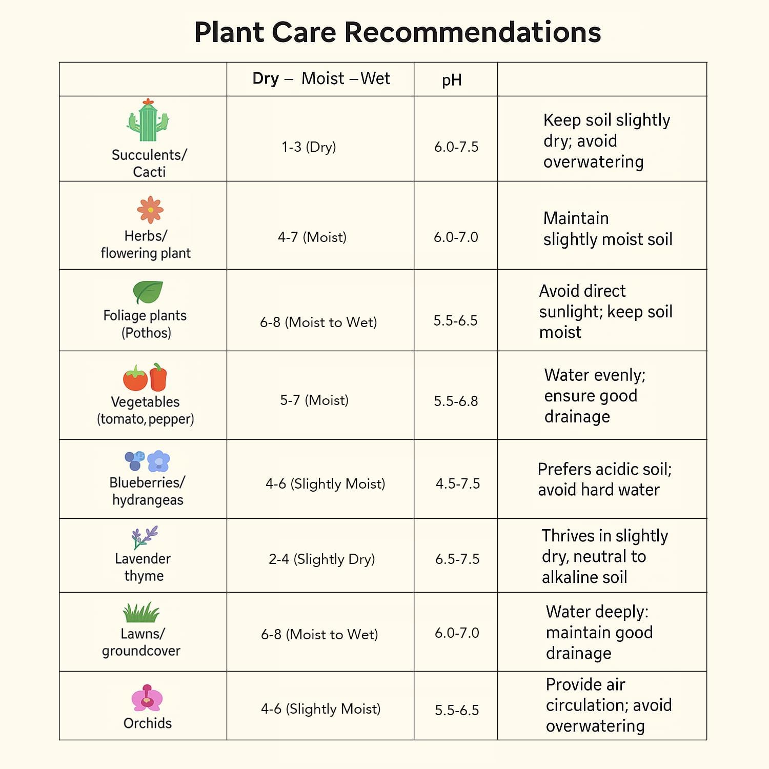 - Usage Tips & Friendly Support: Avoid testing dry or hard soil directly and lightly moisten soil before use to protect the sensor. Not suitable for testing liquid solutions. Backed by U.S. design and technology patents, we offer responsive customer service to ensure your satisfaction