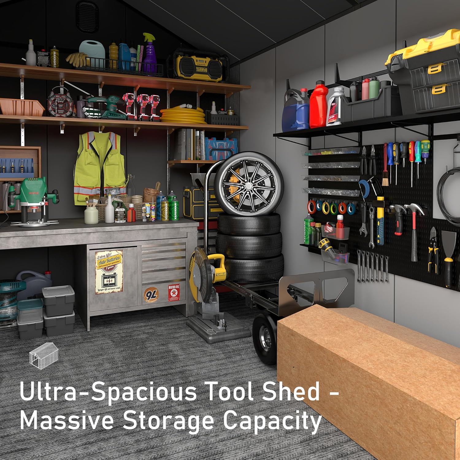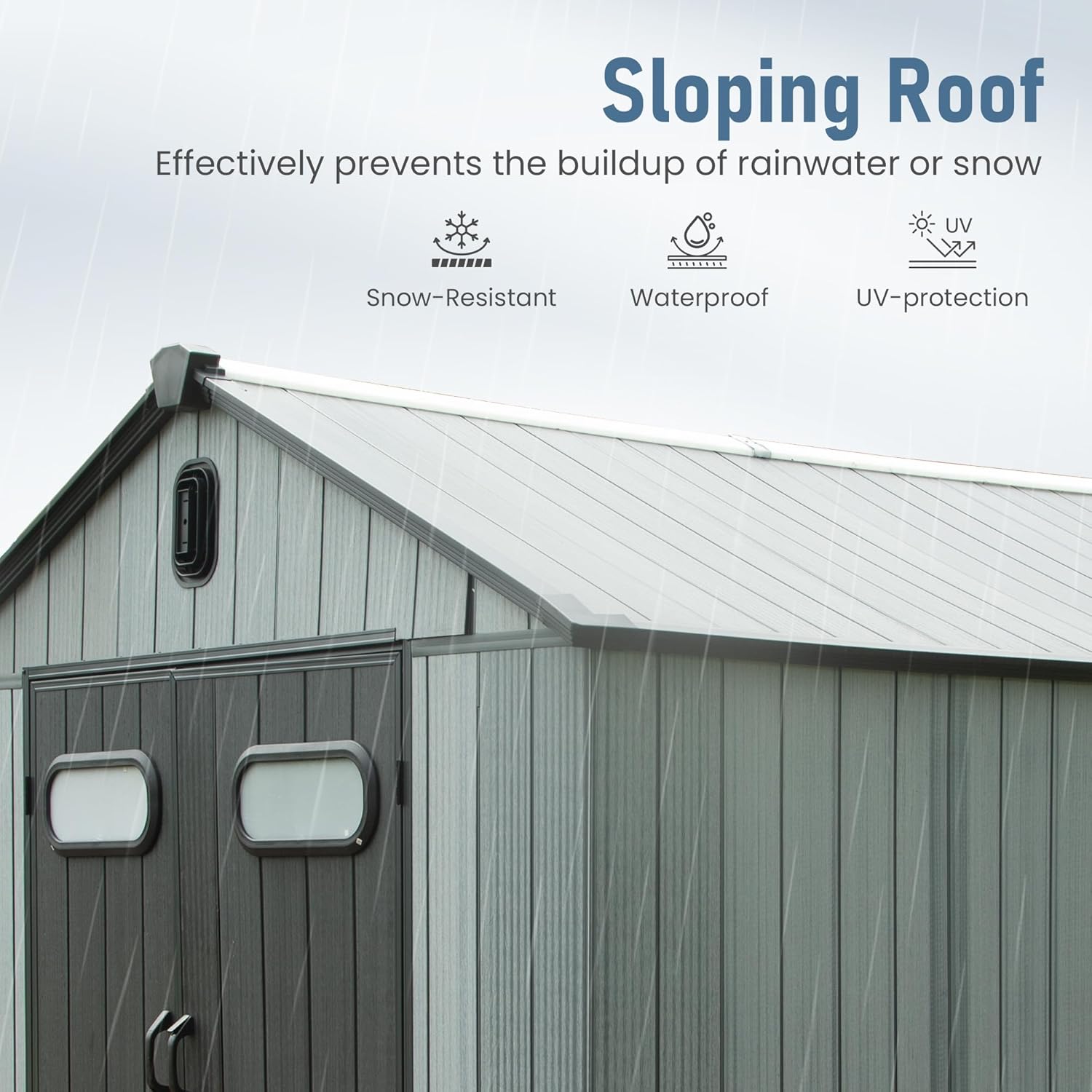 - Weather-Resistant Roof with Snow Load Support: Engineered for harsh conditions, the upgraded roof design withstands snow loads up to 15 lbs./sq. ft., keeping your belongings dry and protected in any season.