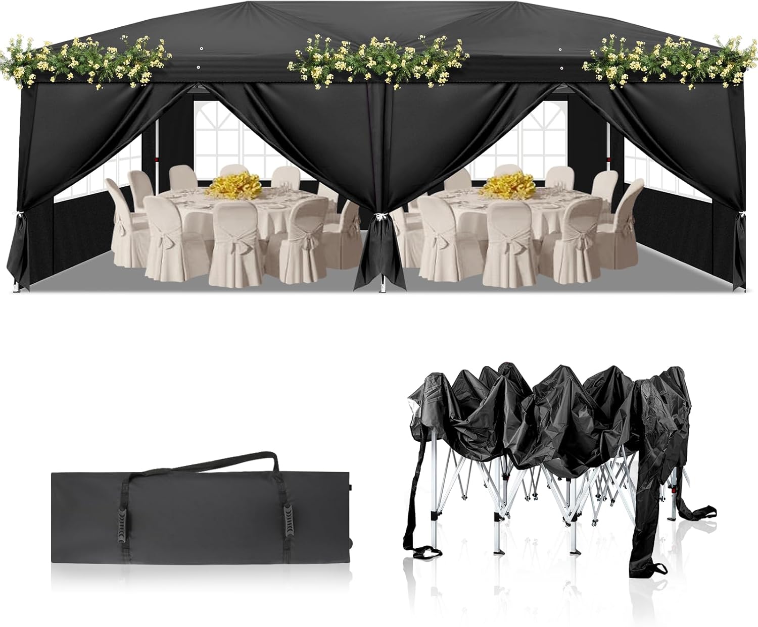 Outvita 10x20ft Pop Up Canopy Tent, Outdoor Instant Shelter Folding Canopy with 6 Side Walls and Carry Bag for Commercial Events, Party, Backyard BBQ, Camping Black