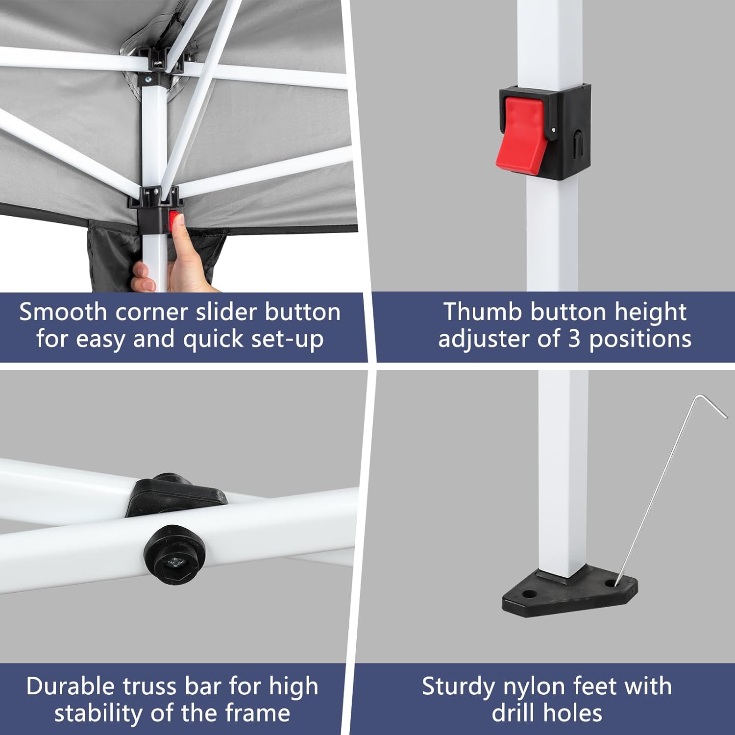 - 【WIDE USAGE】This party tent is perfect for commercial or recreational use like party, wedding, graduation, flea market, small business, outdoor events, patio leisure, backyard, camping, picnics, sporting events, arts and crafts tables and much more