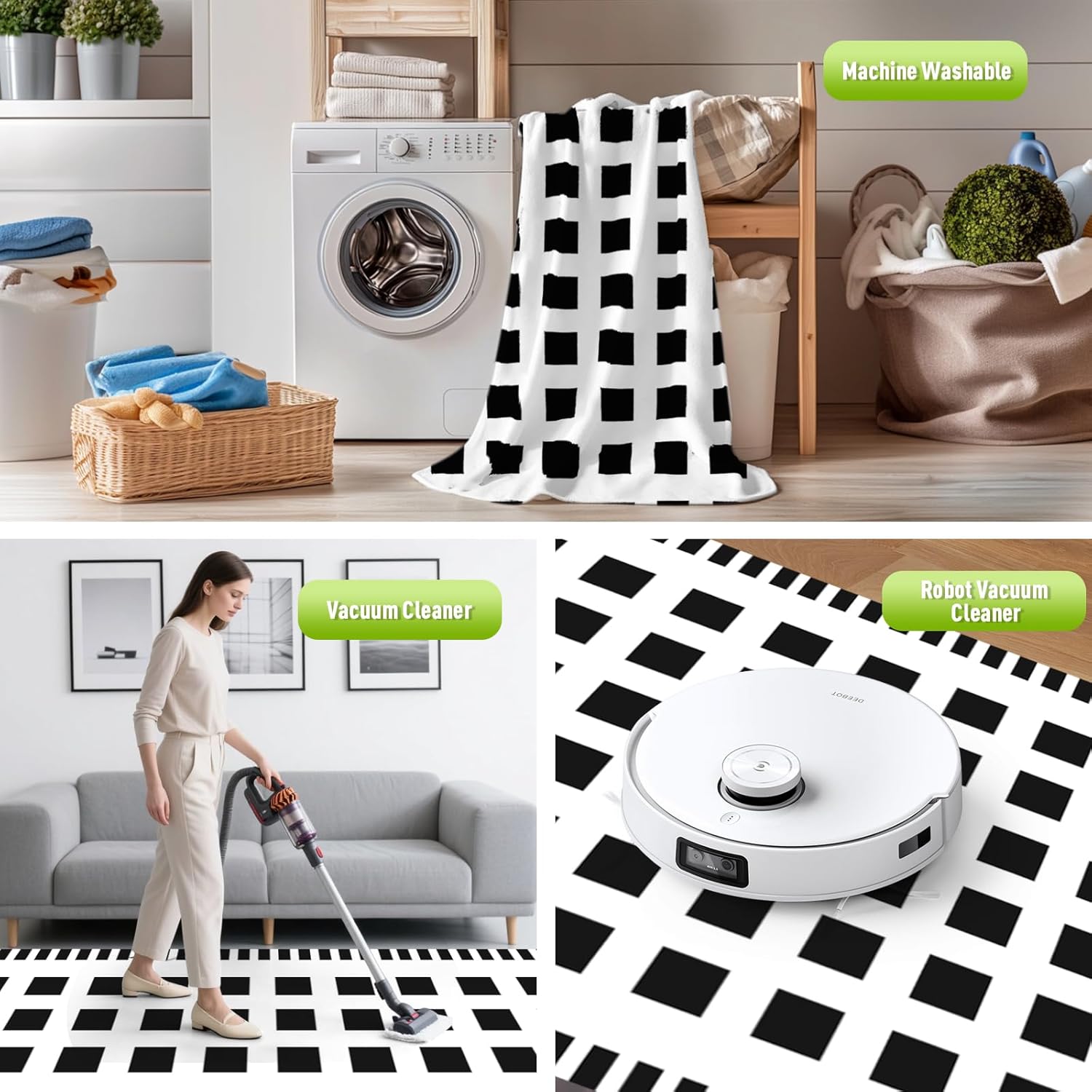 - Stain-Resistant & Easy to Clean: This waterproof, stain-resistant, and quick-drying outdoor rug is made from recycled plastic grass weaving. Dirt, hair, and spills can be easily removed by hosing it down or shaking it off. For deep cleaning, simply wipe it with a damp cloth and mild soapy water, rinse, and let it air dry in minutes