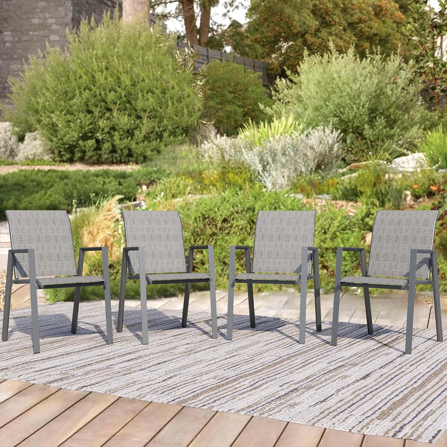- 【Space-Saving Stackable Design】Designed for convenience, these stackable patio chairs are easy to store, making them ideal for compact outdoor spaces, patios, or when you need extra seating for gatherings
