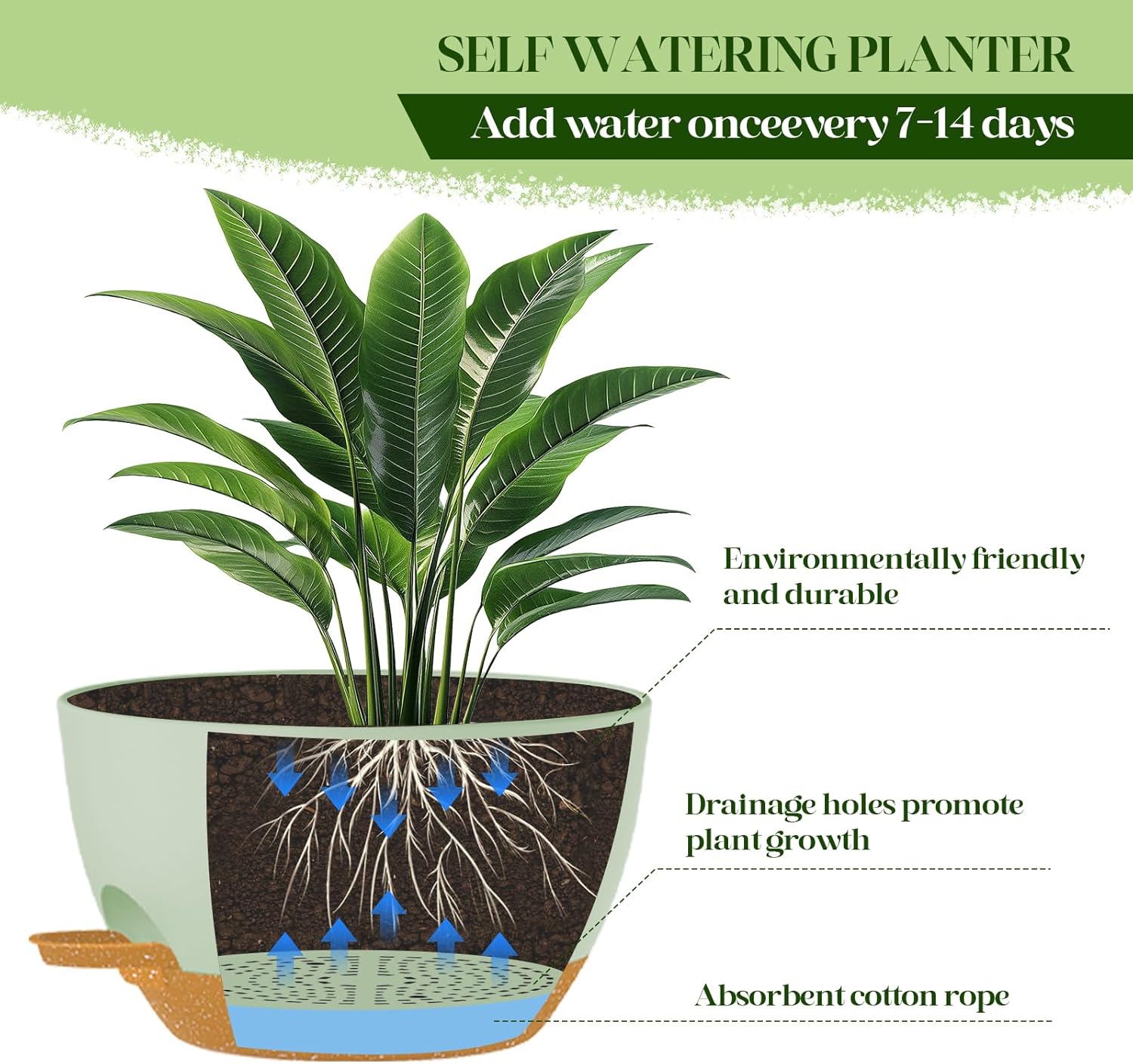 - β 2 Large Self-Watering Planters: Double the value! Includes two 10-inch wide plastic hanging planters with built-in self-watering reservoirs to reduce the need for frequent watering and keep plants healthier.